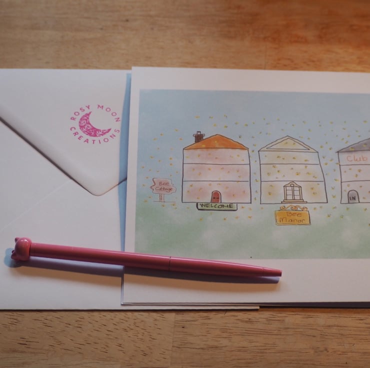 This hand drawn 17x17cm blank card comes with an envelope and is ideal for any occasion.
