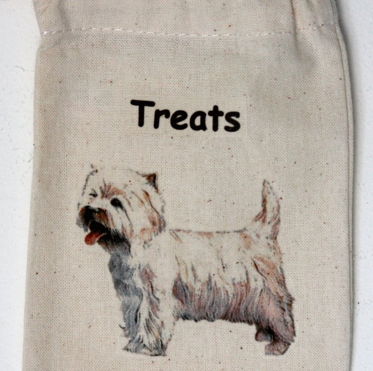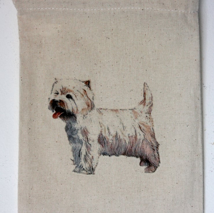 Each set Contains: A Mini Canvas Treat Bag, A Poo Bag Carrier, A Silver Plated Medallion Key Ring and a Metal Bookmark all contained in a larger cotton bag with the same West Highland Terrier illustration. A Great Gift for any dog lover.