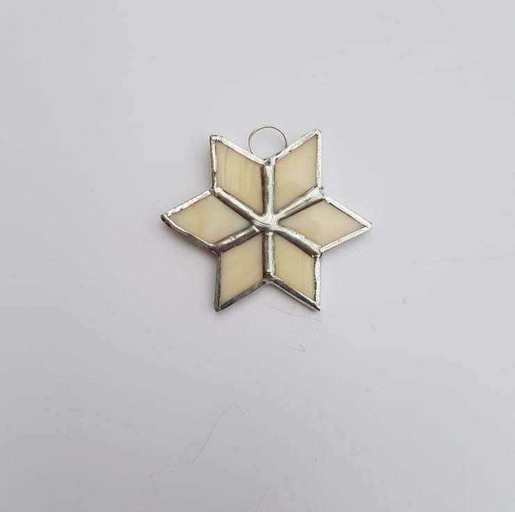 This small start is made using cream glass and has a ring and invisible thread for hanging.