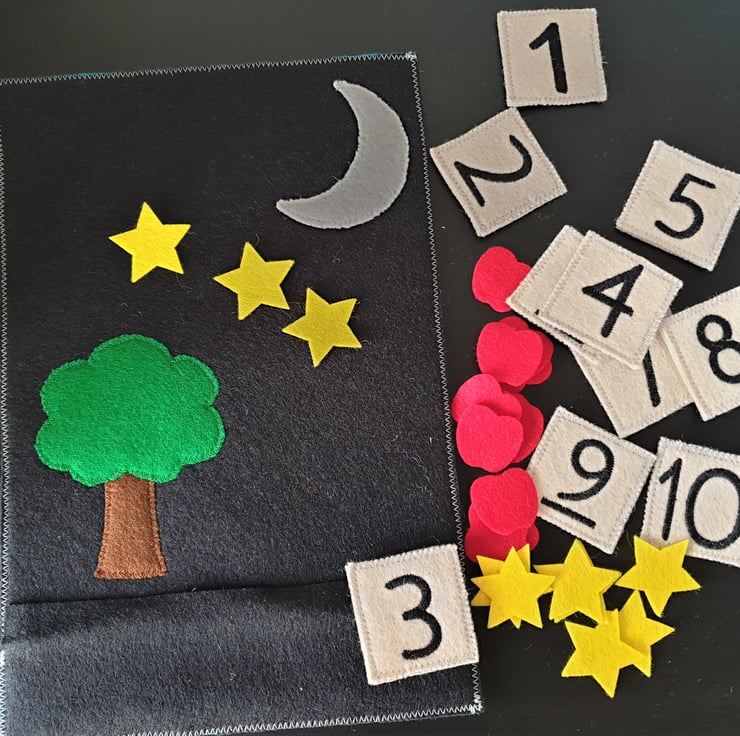 2 - Counting stars. Choose a number card and put the corresponding number of stars in the sky.