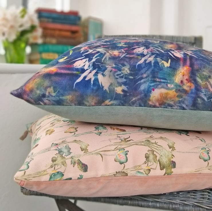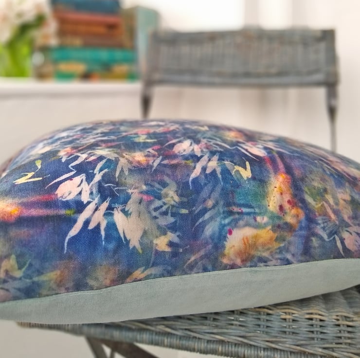 An original cushion featuring my 'Waters Deep' design printed onto a soft chenille fabric by a company in the UK.