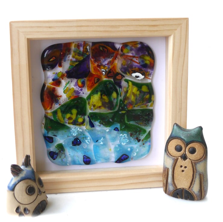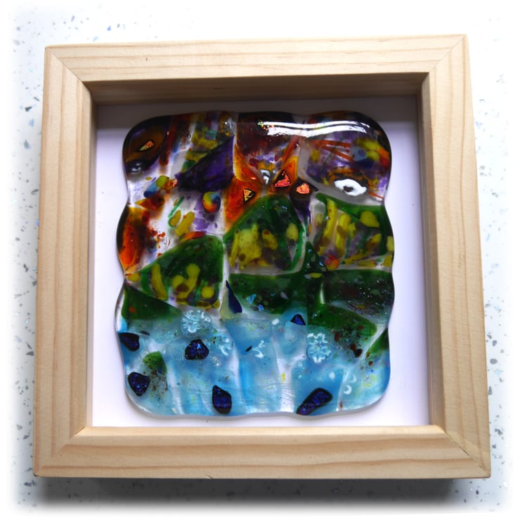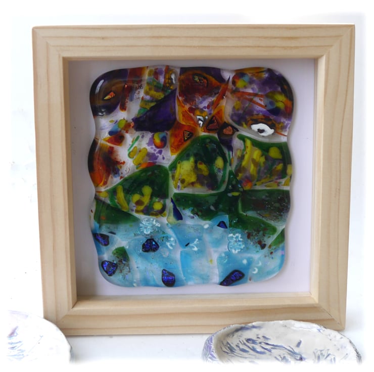 Rain Forest Abstract Fused Glass Picture Box Framed