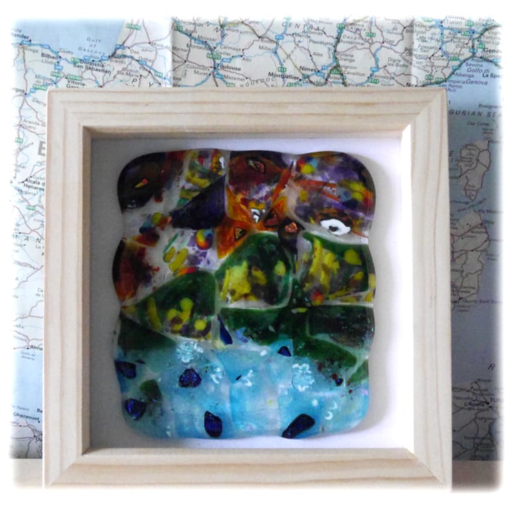 Then into the kiln where it was fused all together to very high temperatures before adding to a box frame so it can be displayed on the wall or free standing.
