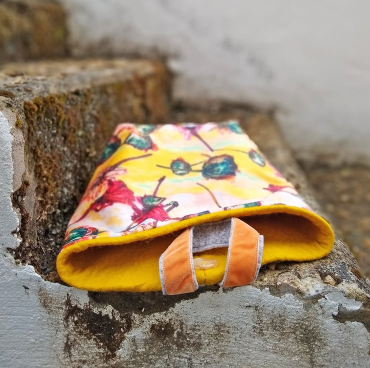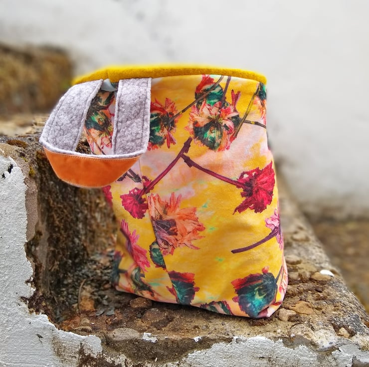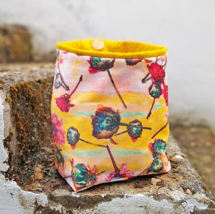 A useful little storage pouch featuring my original 'Blooms' pattern printed onto soft velvet by a company in the UK.