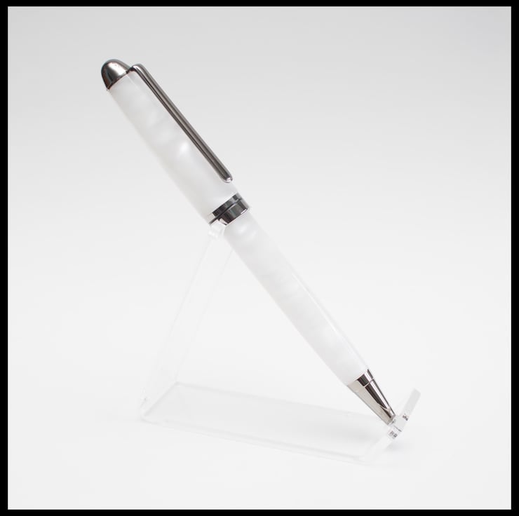 A really eye-catching ballpoint pen with barrels made from acrylic. This highly iridescent material and black titanium plated fitting are normally only found on pens costing much. These are hand crafted by myself and finished to an exceptionally high quality.