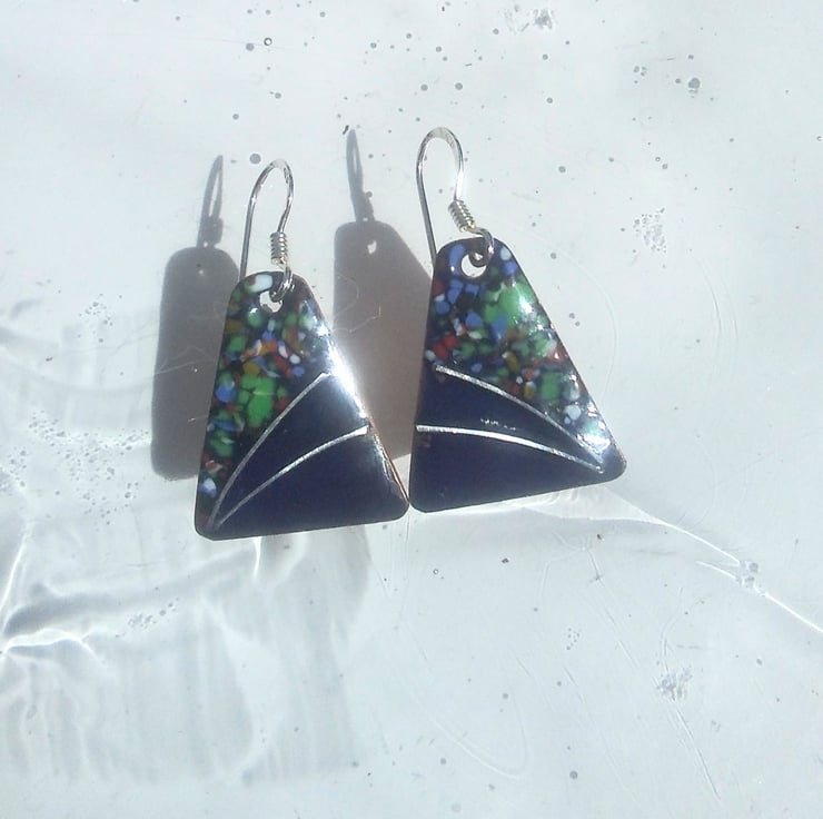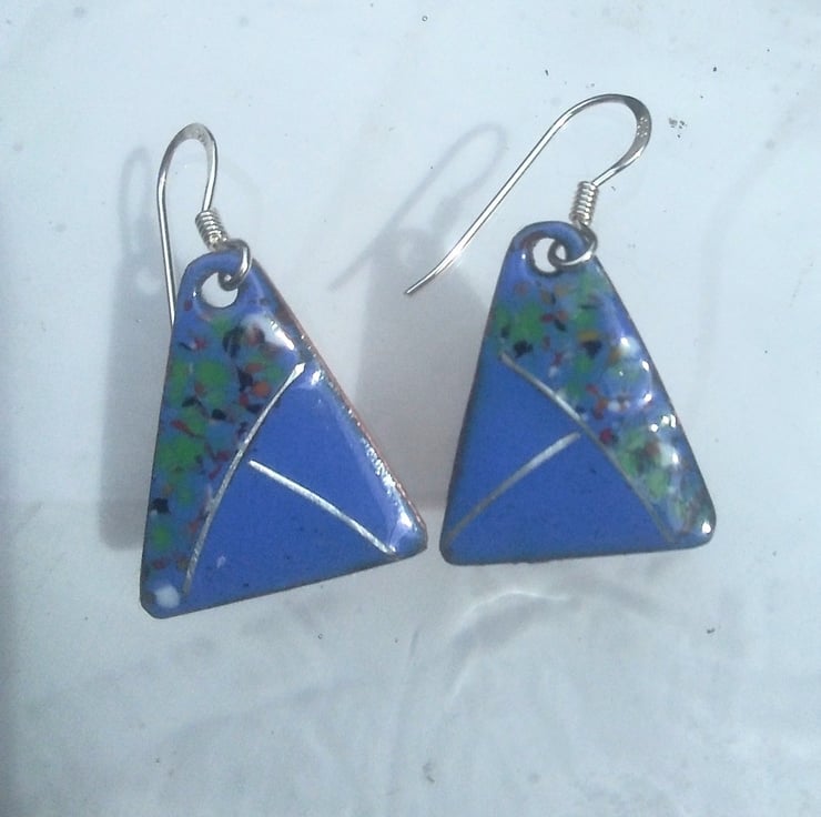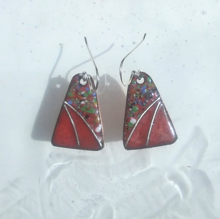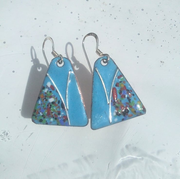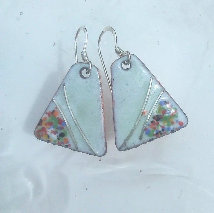 These dainty little earrings are just 20mm long by 15mm wide. Once the colour is kiln-fired, I have added sterling silver wire, re-fired, then added enamel crystals and again re-fired at 800 degrees C. They are perfect for weddings and also could be worn with sweater and jeans...very versatile adornments!