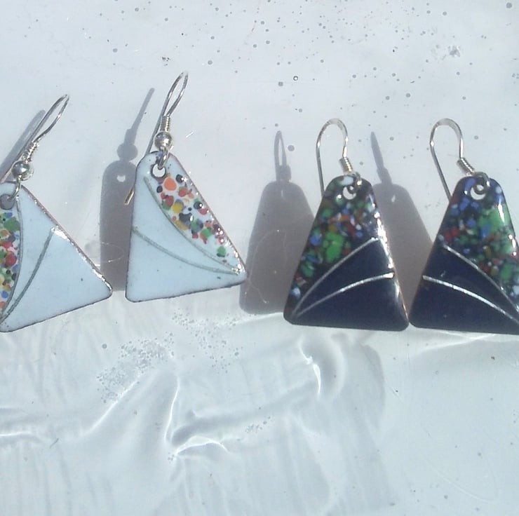 DAINTY SHORT ENAMELLED EARRINGS - TRIANGLE WITH STERLING SILVER