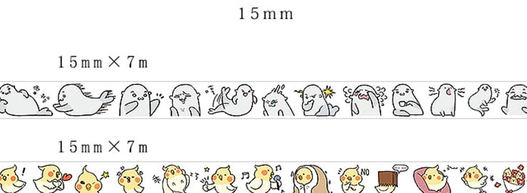 Seal print patterned tape. Kawaii grey seal in a variety of poses, Great for all types of craft projects.