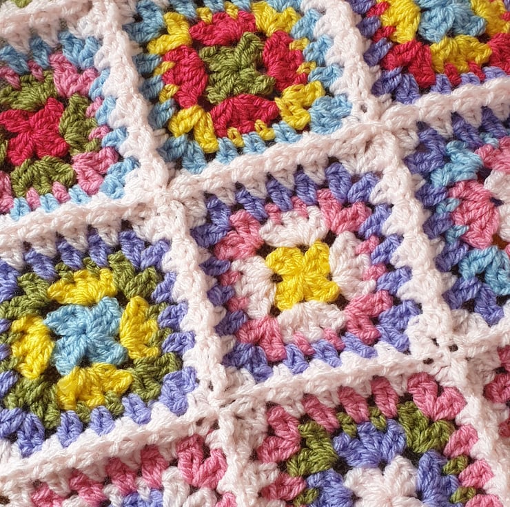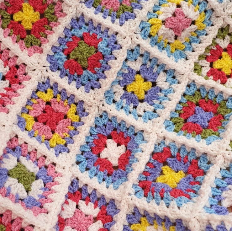 Handmade crochet blanket from my tiny house in Kent. I use acrylic yarn so blankets are fully washable, I recommend by hand or a gentle machine cycle - pop the blanket into a pillow case/laundry bag and dry flat.