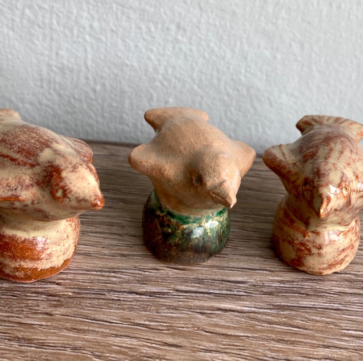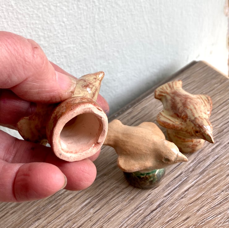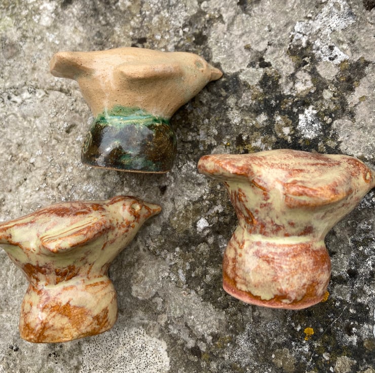 Set of 3 handmade ceramic cane toppers in bird design from my own original mould. Great gift for any keen gardener , no plastic and reusable. Price includes UK postage.