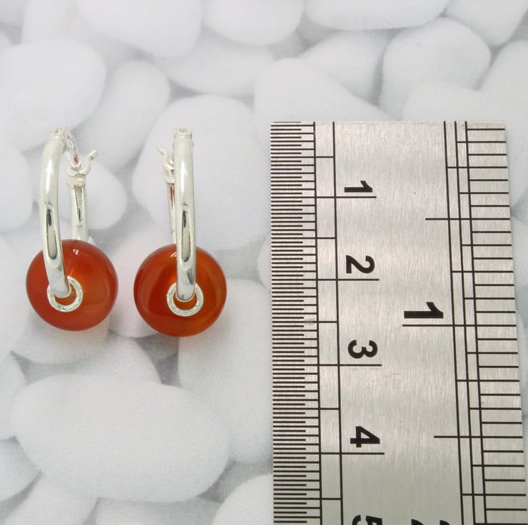 Size, sleeper earrings 18mm diameter, carnelian stones 10mm diameter