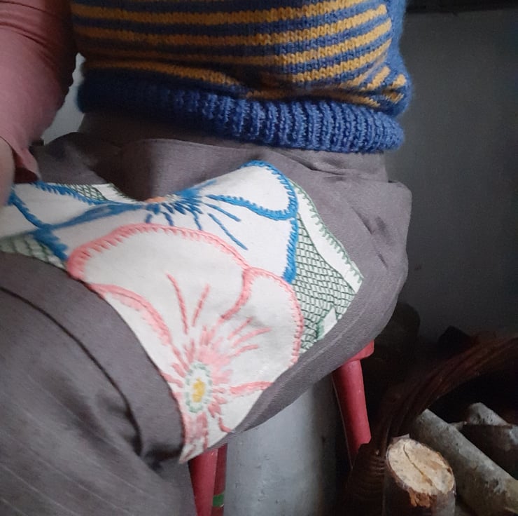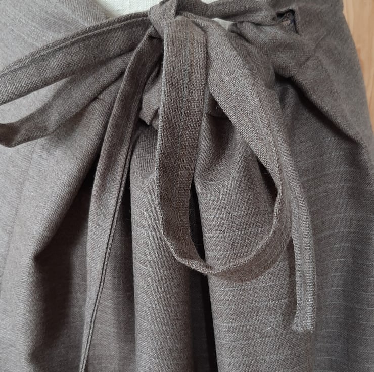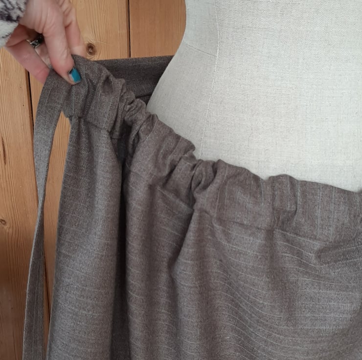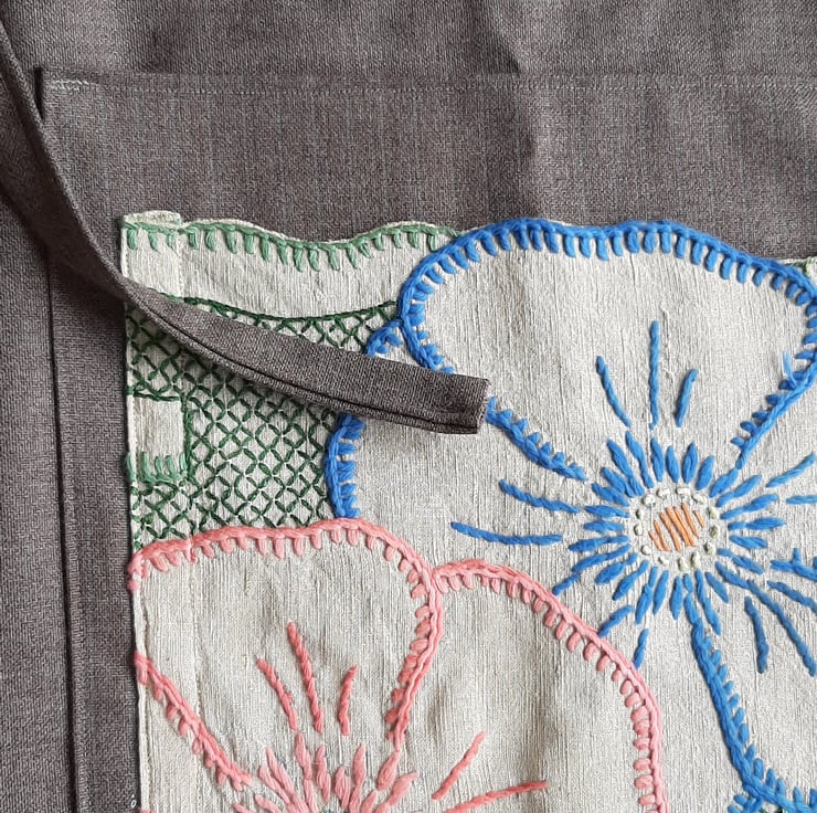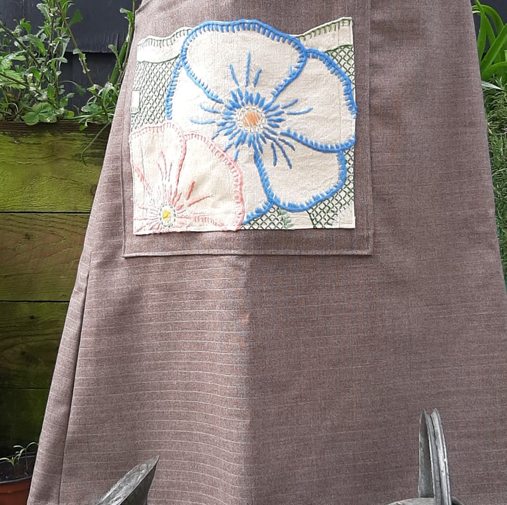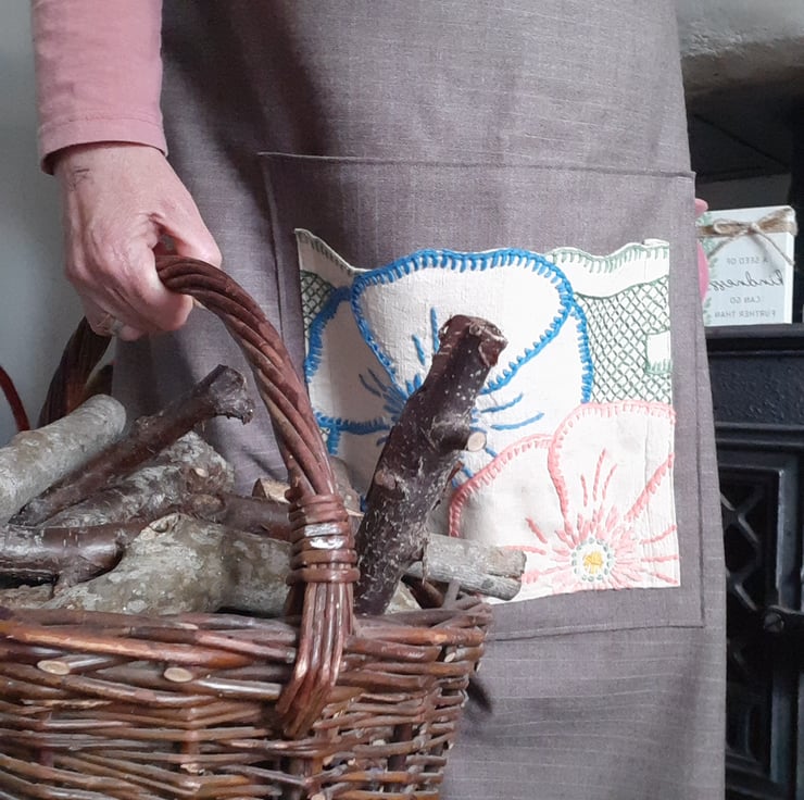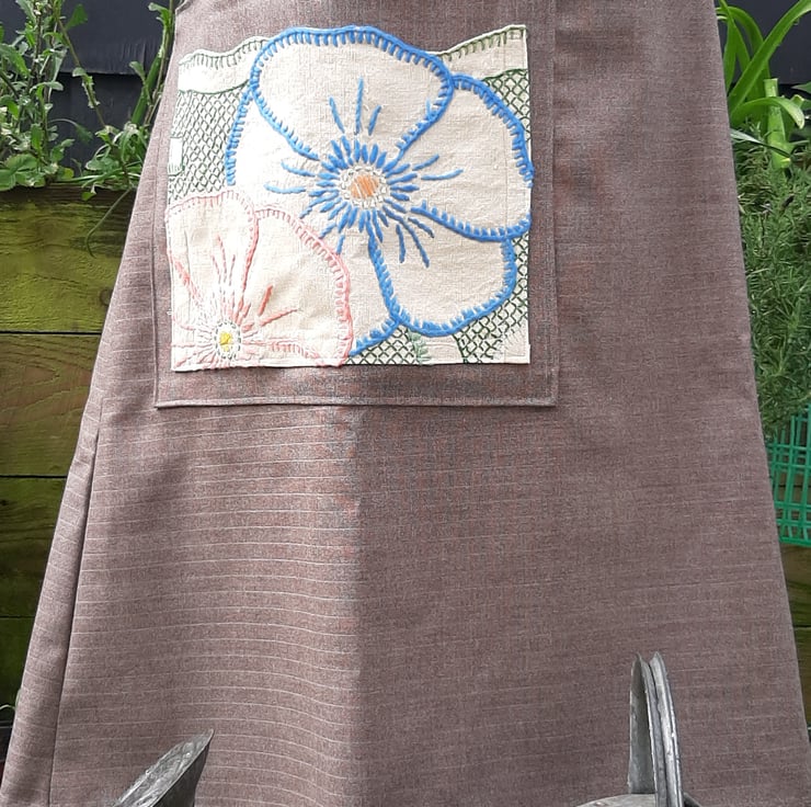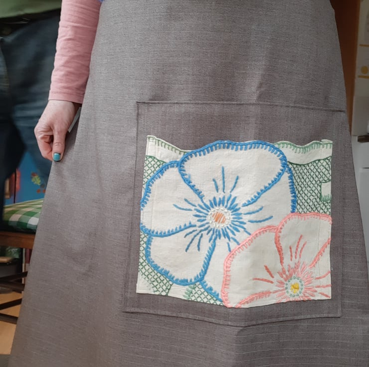 Beautiful skirt big oversized pocket with embroidery. Adjustable sizes as pulls toa gather at the back. Average a 12 to 14 but if you are smaller would just have more gather at the back. From waist band to hem 80cm . Fine wool beautiful fabric . All seems are overlocked. Made with love and attention.