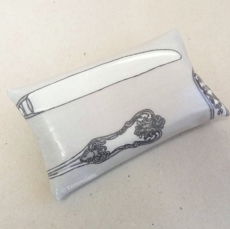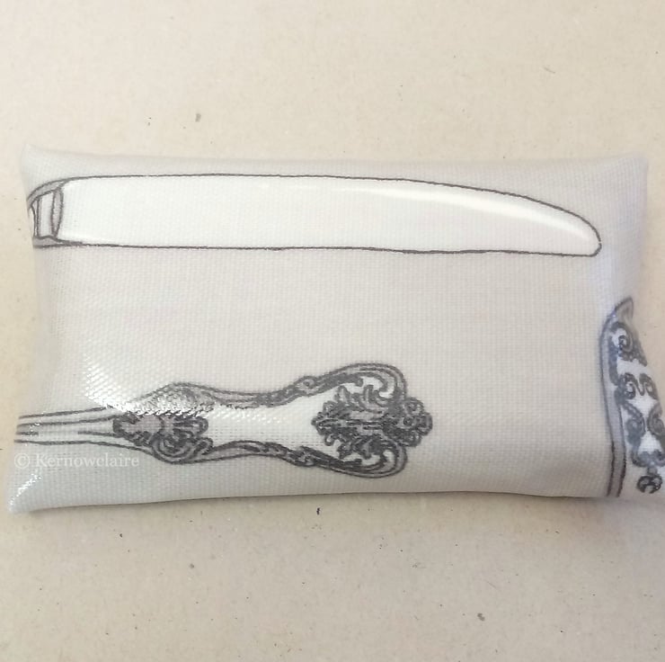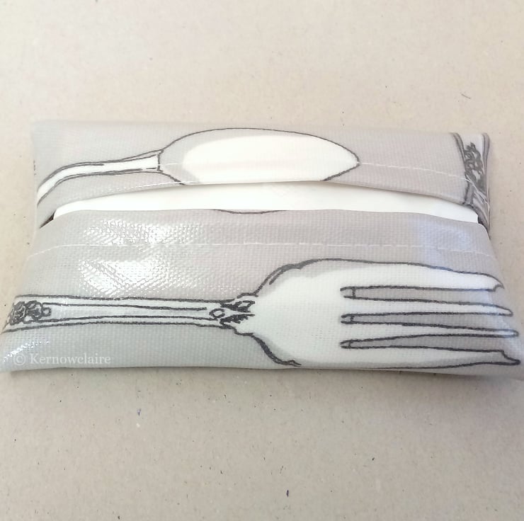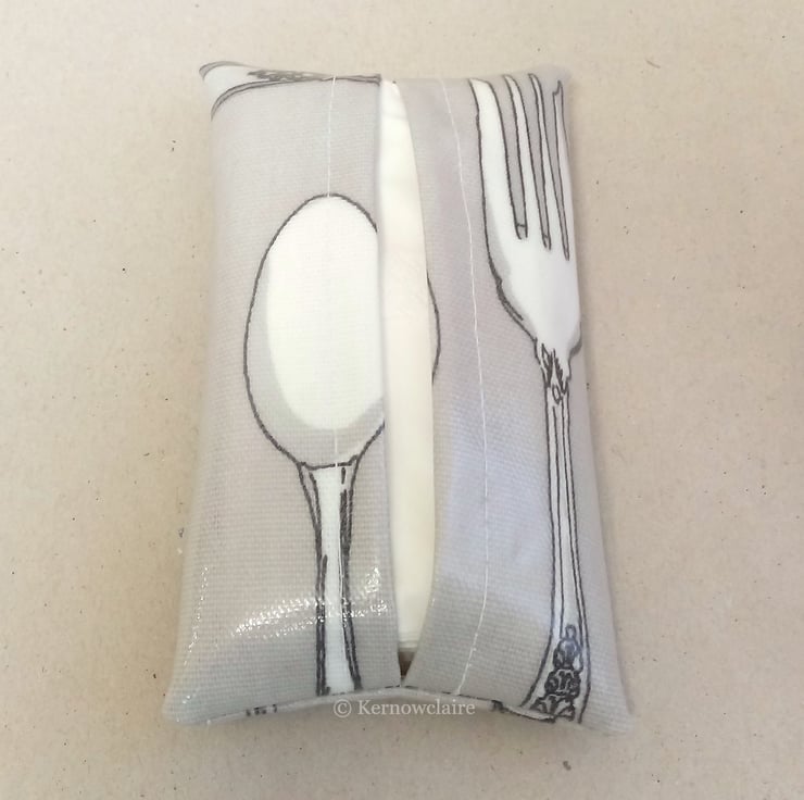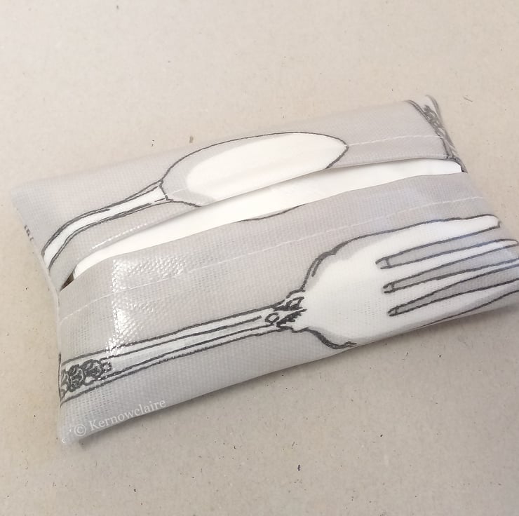 SALE 15% OFF Pocket tissue holder in grey with cutlery pattern, tissues included