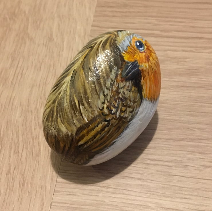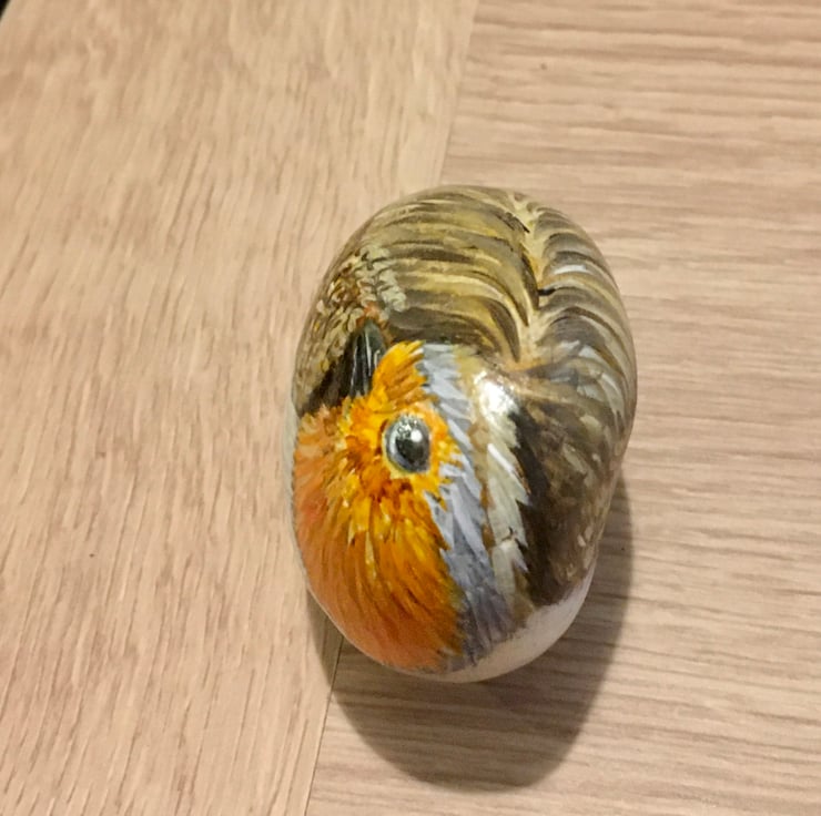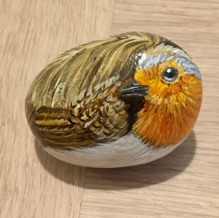 This little robin has been painted onto a smooth stone and glazed for a glossy protective finish
