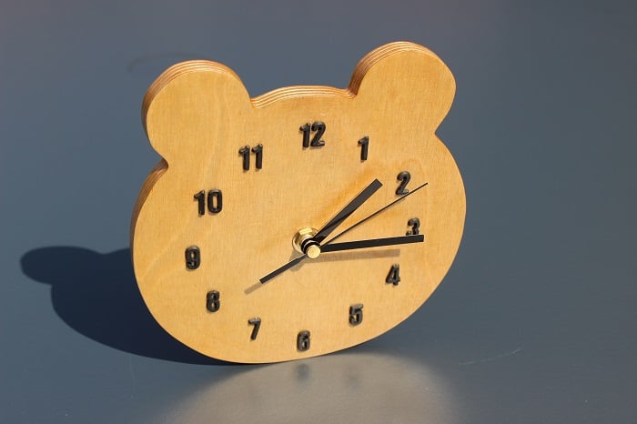 This clock look good in any room in the house from a child's bedroom to the kitchen and make a great gift. The clock is made from finest birch wood ply, coated in hardwearing clear satin varnish.