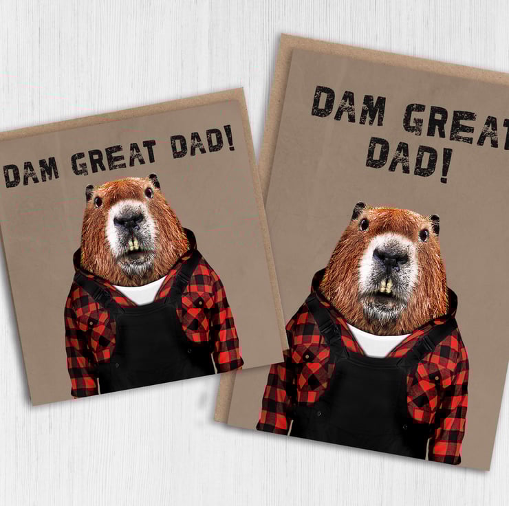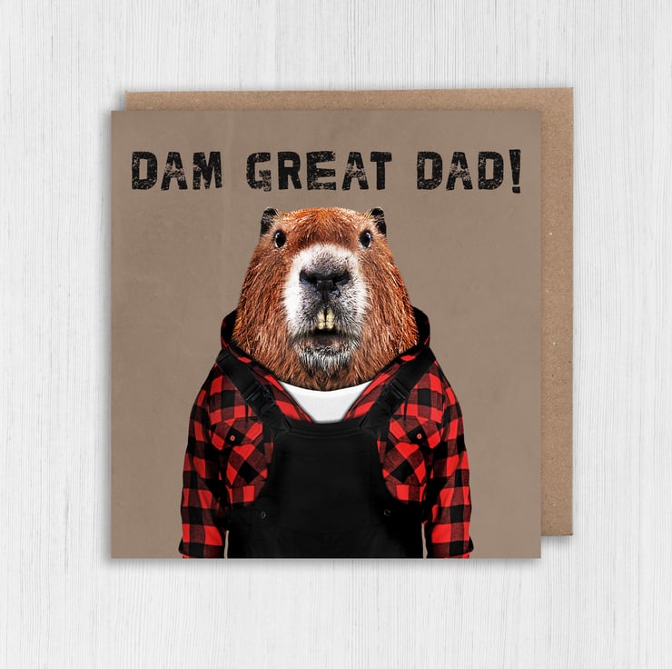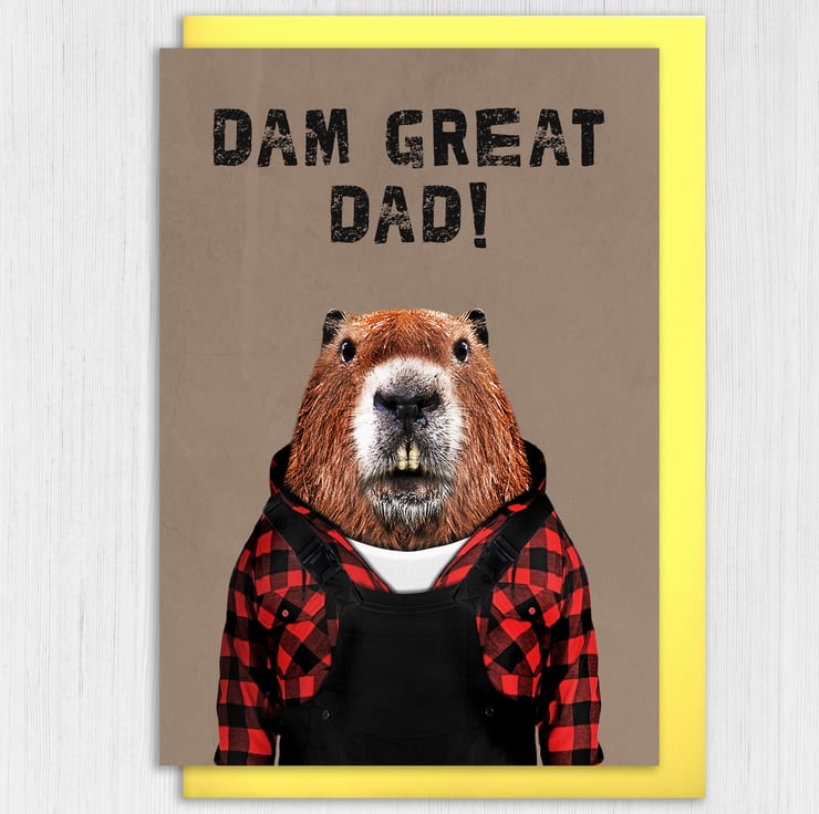 Beaver in clothes birthday card for dad, daddy, father, papa: Dam Great Dad! (Animalyser)
