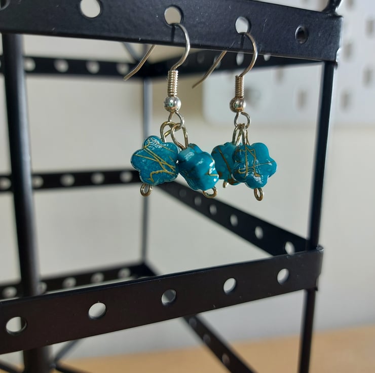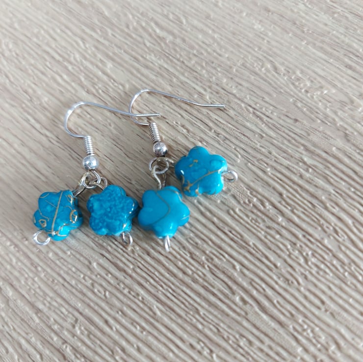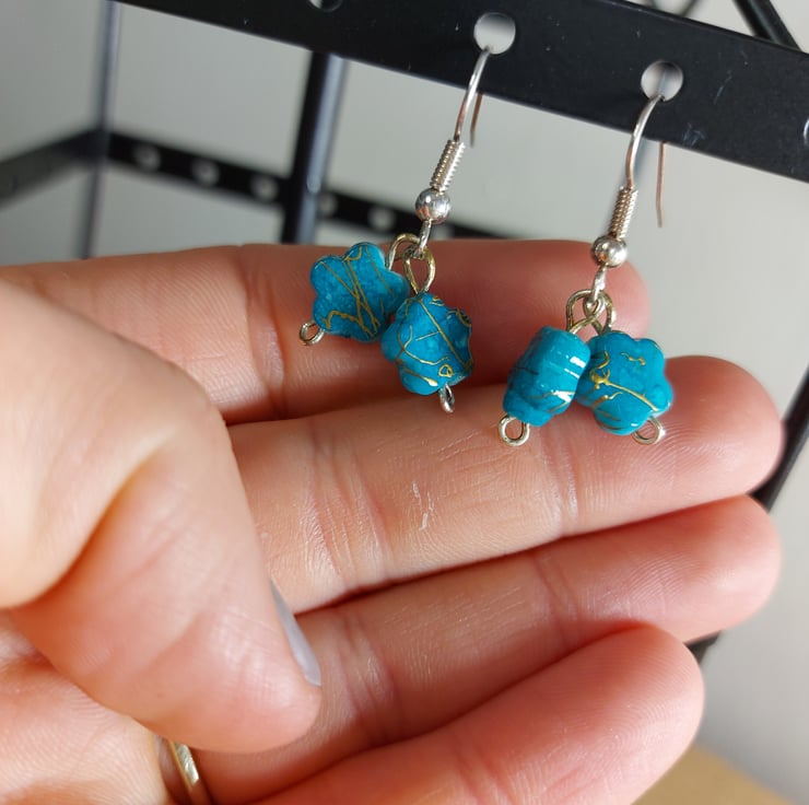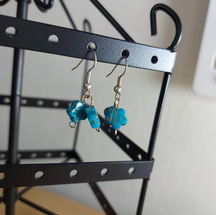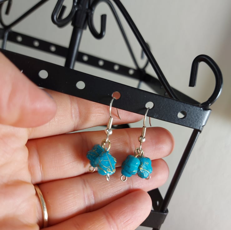 These delicate dangley earring are a handmade from little star shaped beads i have made a few variations of these witch can make for realy cute gifts for sisters or friend groups . These have a coppery coloured shimmer to them they look amazing in the sunshine each bead is a little different in colour and have been matched up as closely as possible. I have 3 pairs of these available and they are slightly different and they have been paired up to best make a coordinating pair .