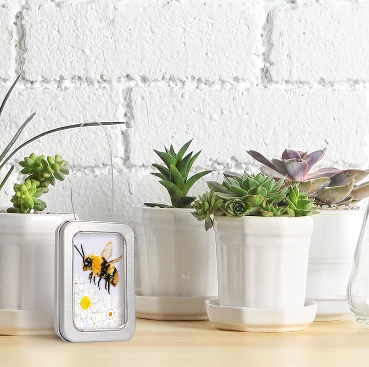 Bee, little fabric bumble bee picture framed in a tin, gift, ornament
