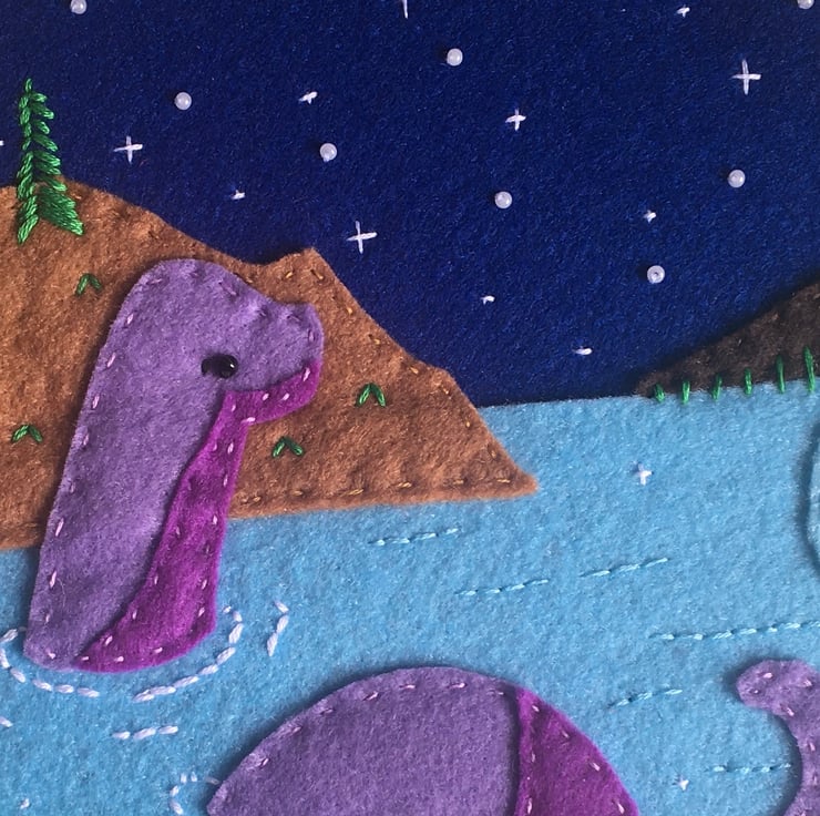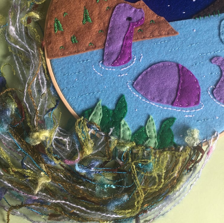 The picture is made from layers of felt and has been decorated by hand with embroidery and bead work. it has been backed with a layer of felt to finish it off.