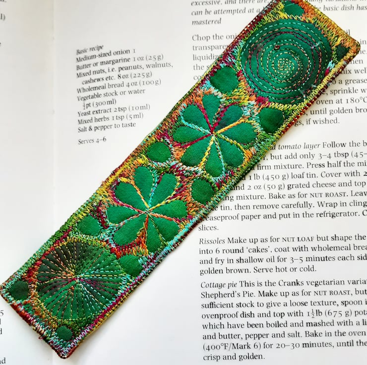 Made from layers of fabric including hand dyed Egyptian cotton and silk fabrics using the free machine embroidery style of sewing