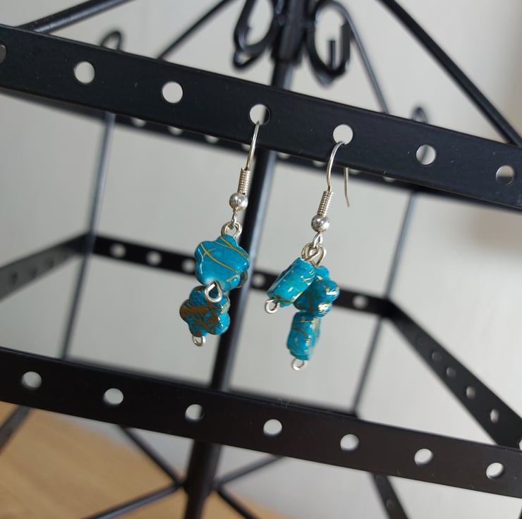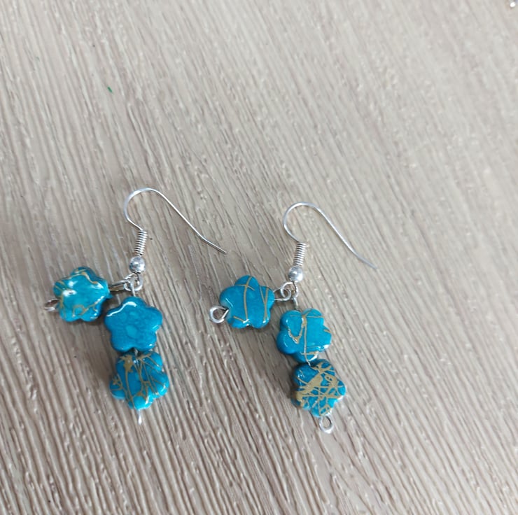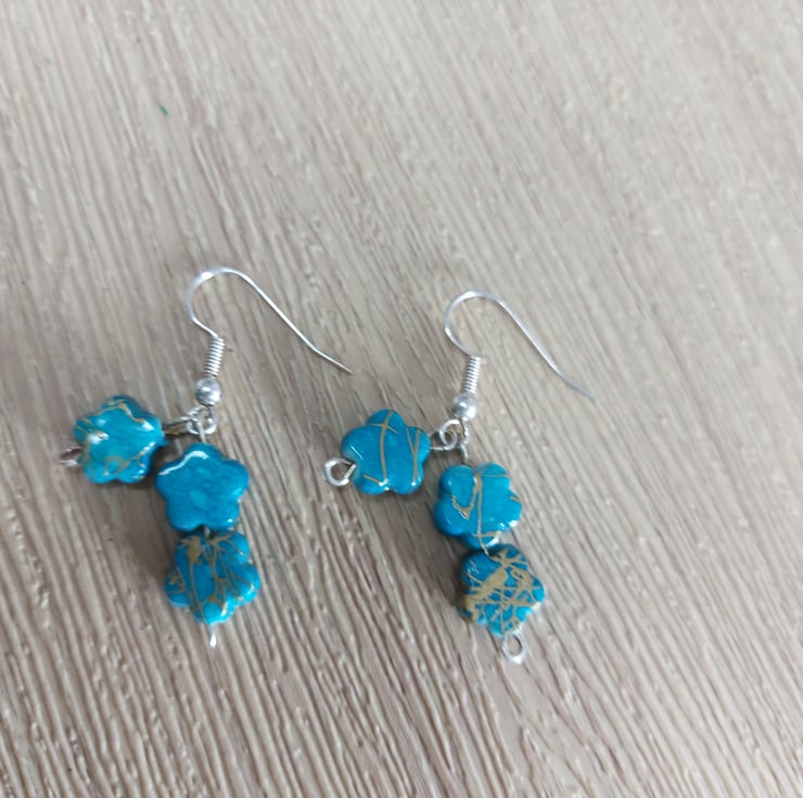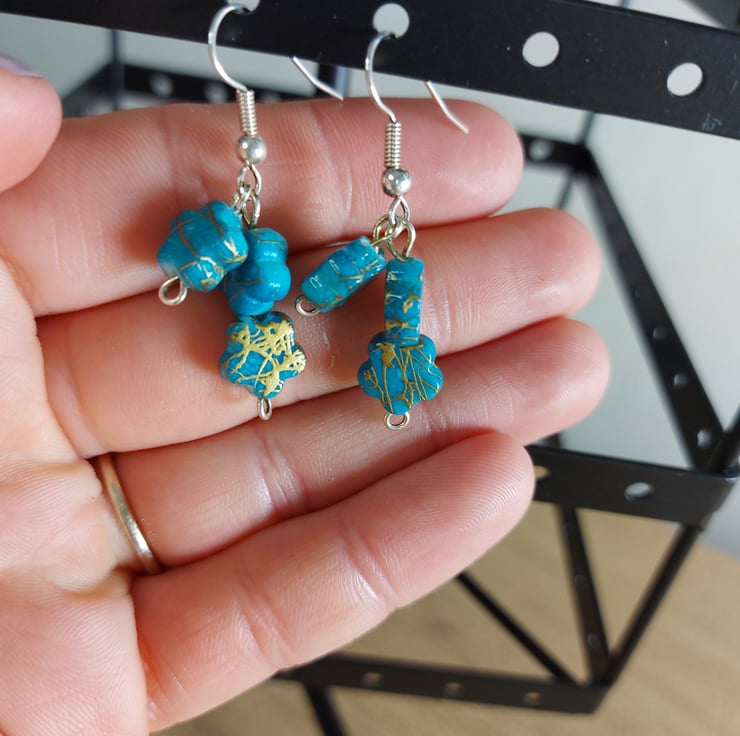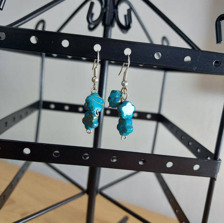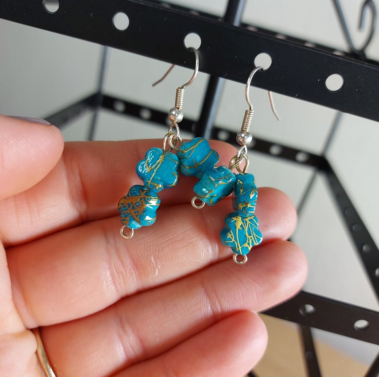 These delicate dangley earring are a handmade from little star shaped beads i have made a few variations of these witch can make for realy cute gifts for sisters or friend groups . These have a coppery coloured shimmer to them they look amazing in the sunshine each bead is a little different in colour and have been matched up as closely as possible. I have 3 pairs of these available and they are slightly different and they have been paired up to best make a coordinating pair .