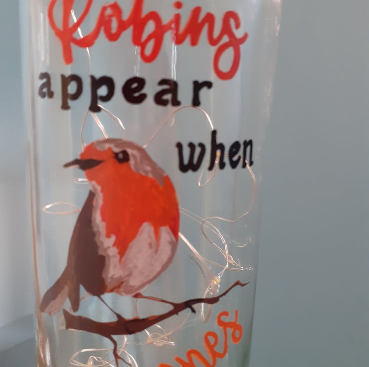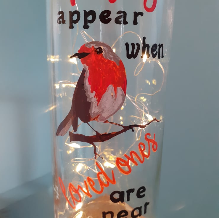 Do you think of a loved one when a robin appears? So do I and this is why I painted this lamp.