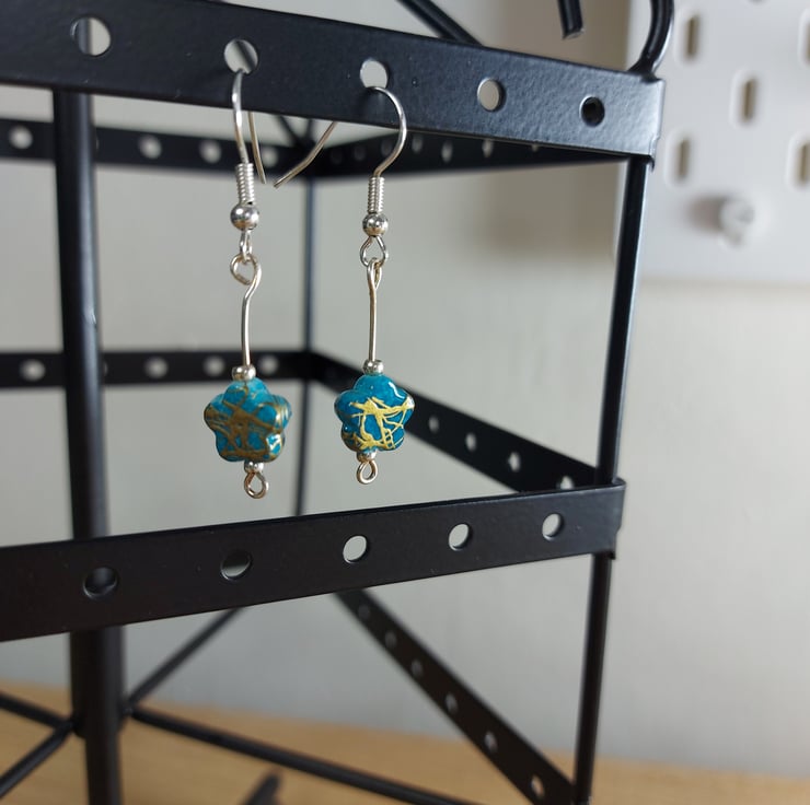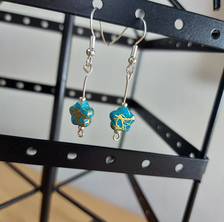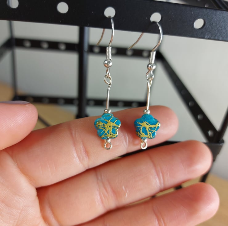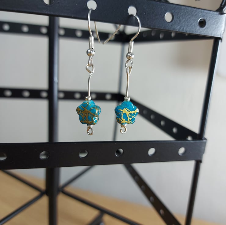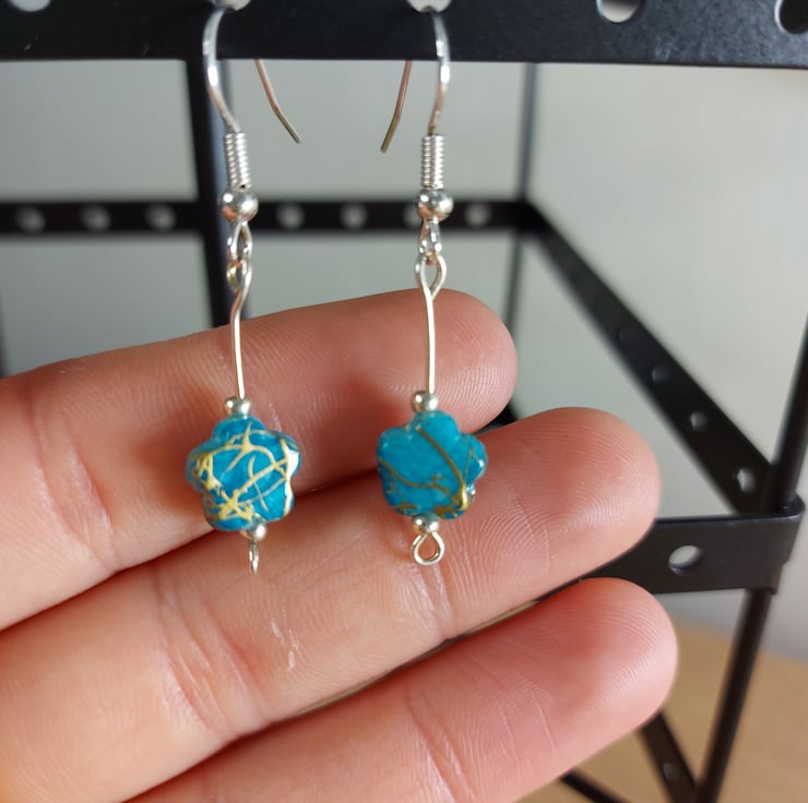 These delicate dangley earring are a handmade from little star shaped beads i have made a few variations of these witch can make for realy cute gifts for sisters or friend groups . These have a coppery coloured shimmer to them they look amazing in the sunshine each bead is a little different in colour and have been matched up as closely as possible. I have 2 pairs of these available and they are slightly different and they have been paired up to best make a coordinating pair i did make another pair but im keeping one for my self .