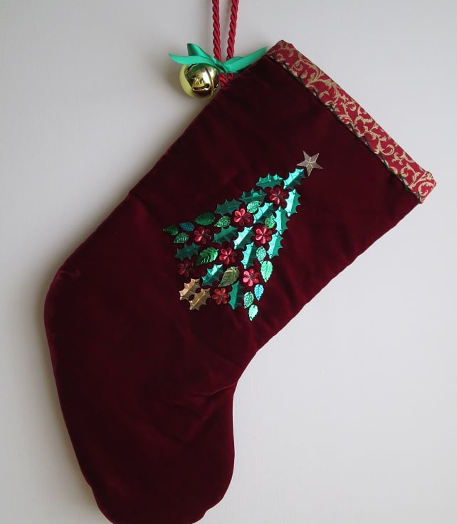 1 x SALE 'Tree' Luxury Velvet Christmas Stocking