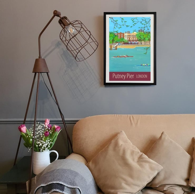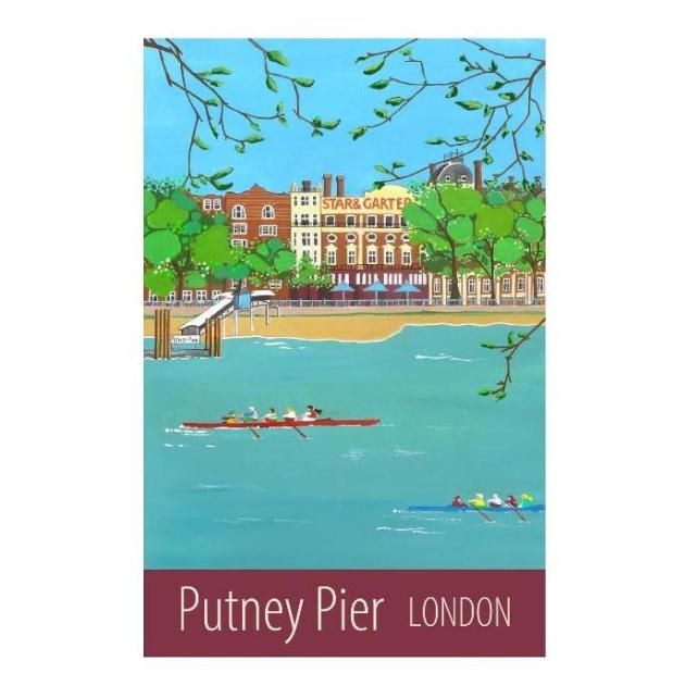 A beautiful print of rowers on the River Thames by Putney Pier and the famous Star and Garter, from my own original acrylic painting.
