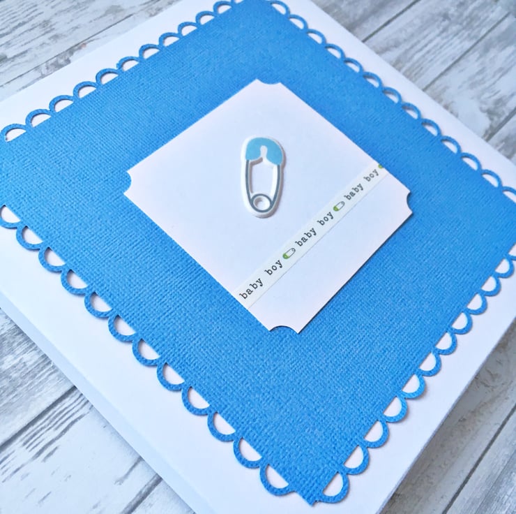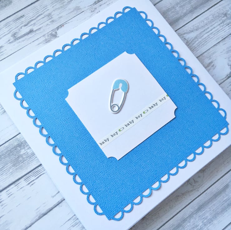 If you would prefer your card to be wrapped in polka-dotted tissue paper and presented in a matching gift box decorated with a blue nappy pin and the words baby boy then you can select that option instead.