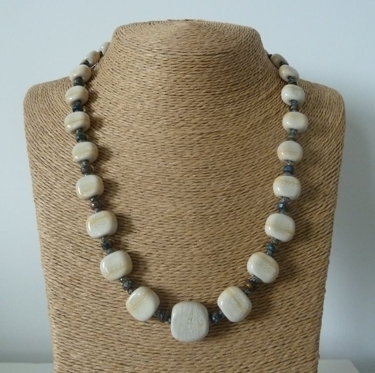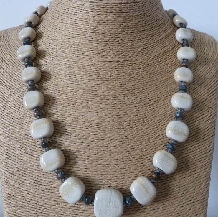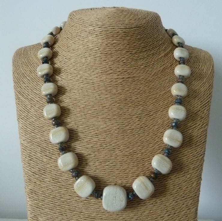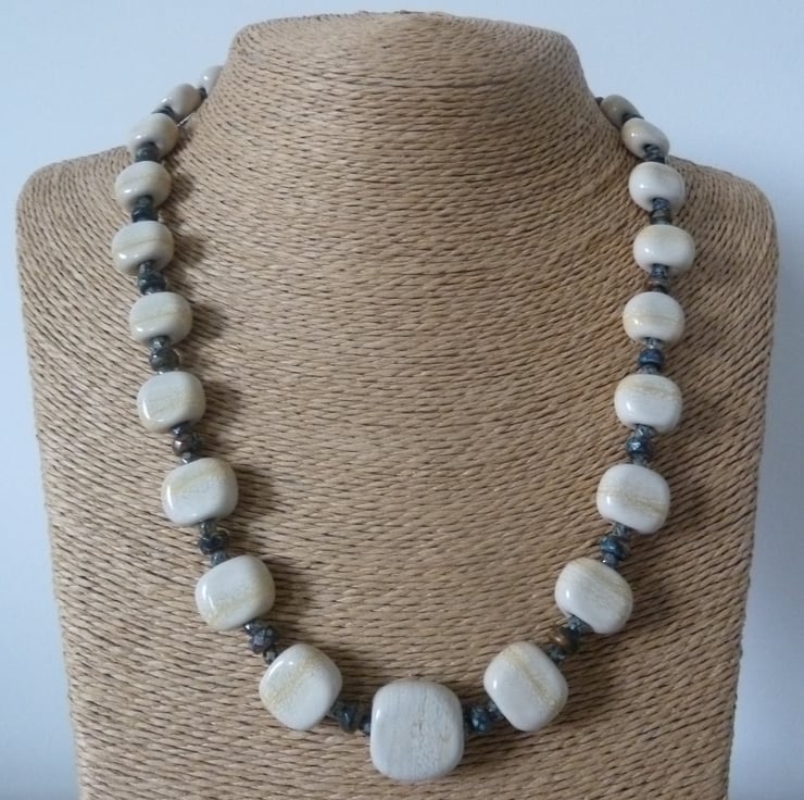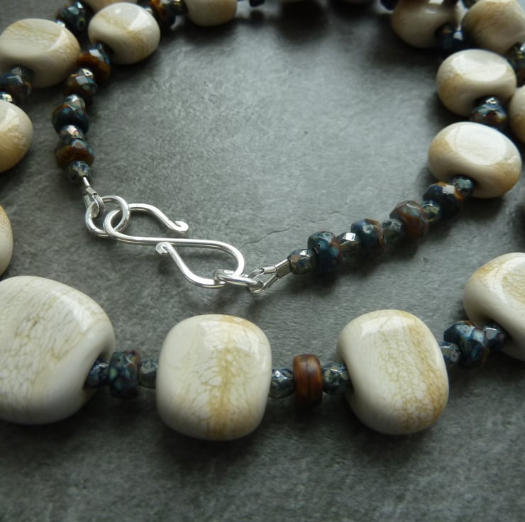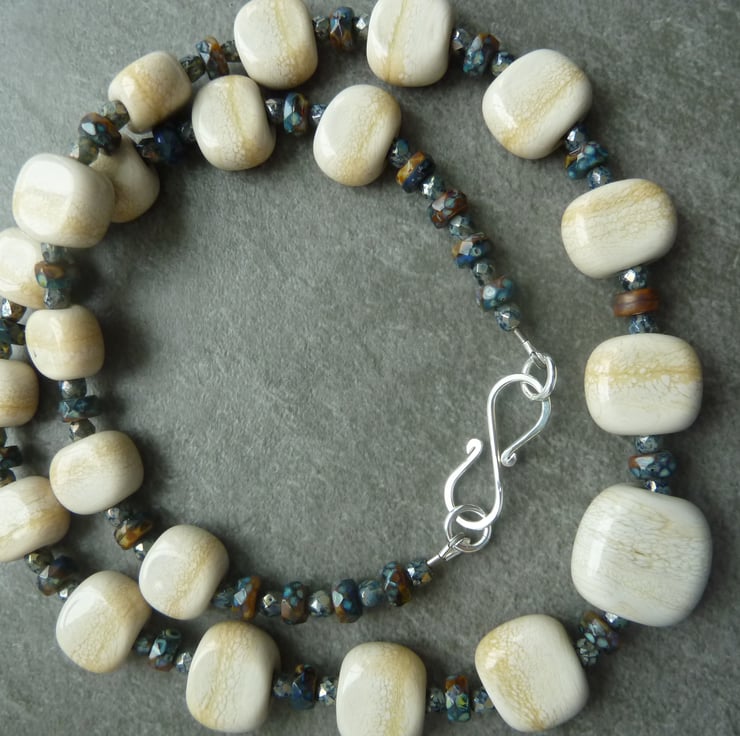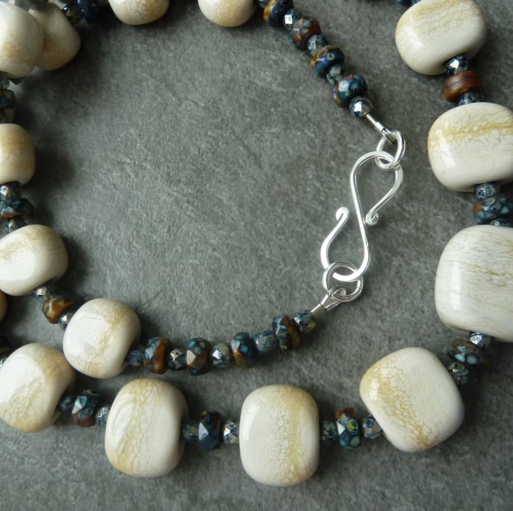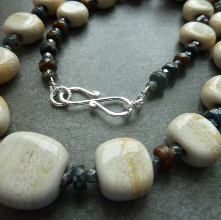 The lampwork beads have been handmade by me using stone effect glass and hand shaped into pebble shapes.