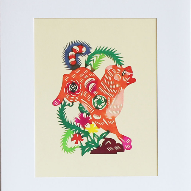 This unusual card features an intricate paper cut of a tiger in the aperture.