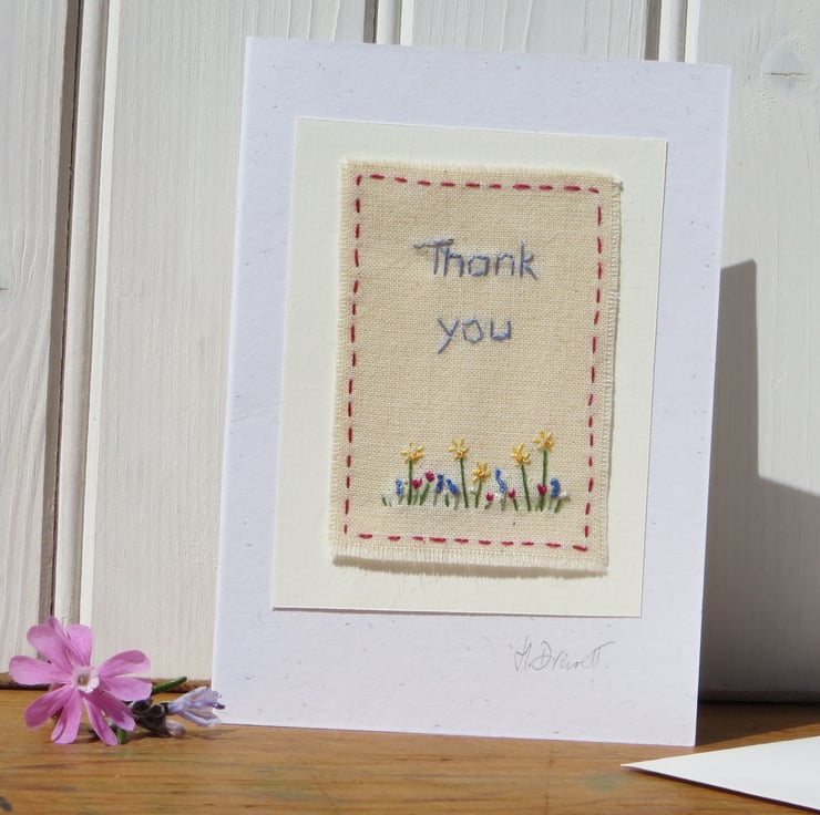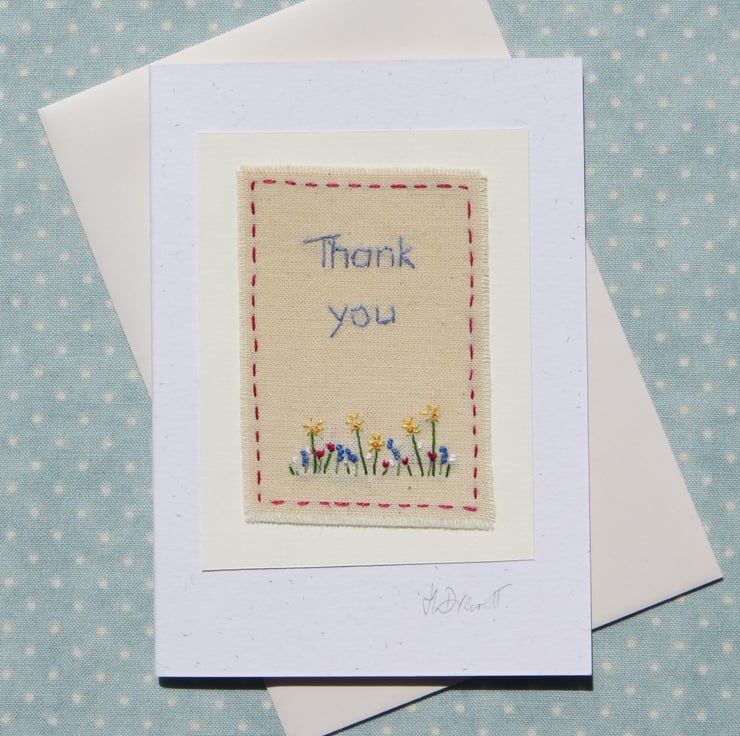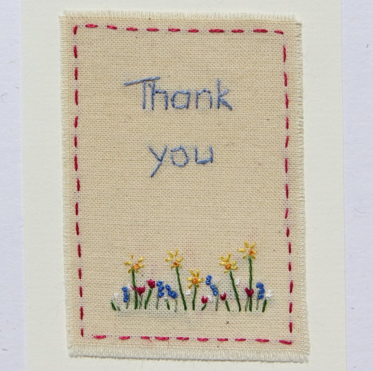 For this card I have embroidered the words 'Thank You' adding some embroidered flowers eneath. A special way to show your appreciation for those acts of generosity and kindness we are fortunate enough to receive.