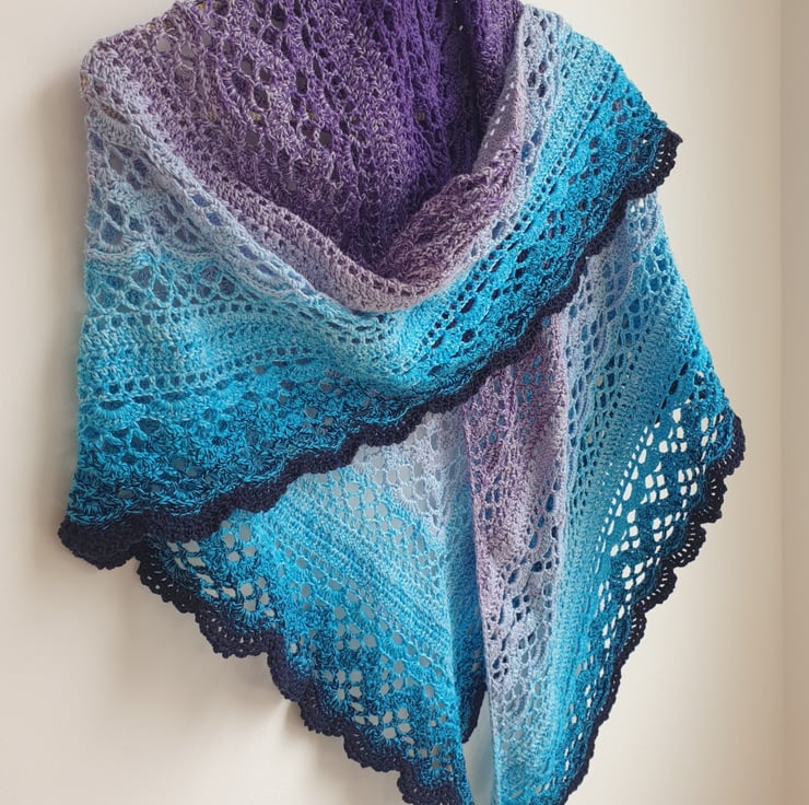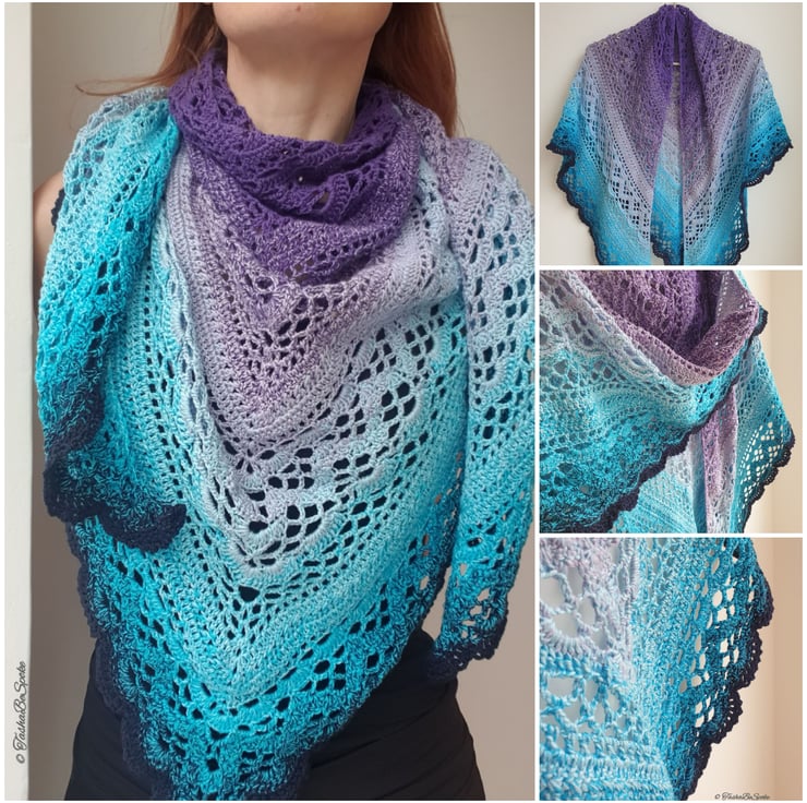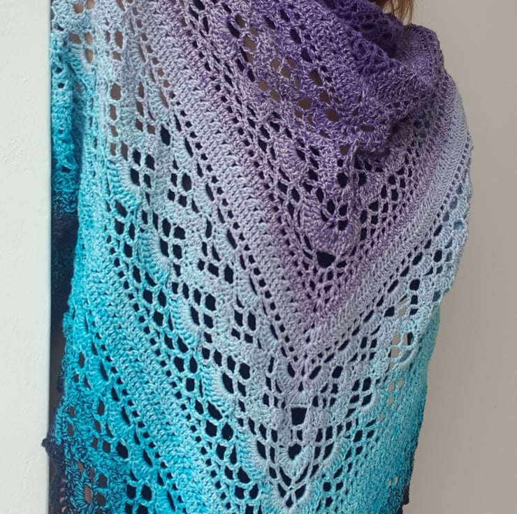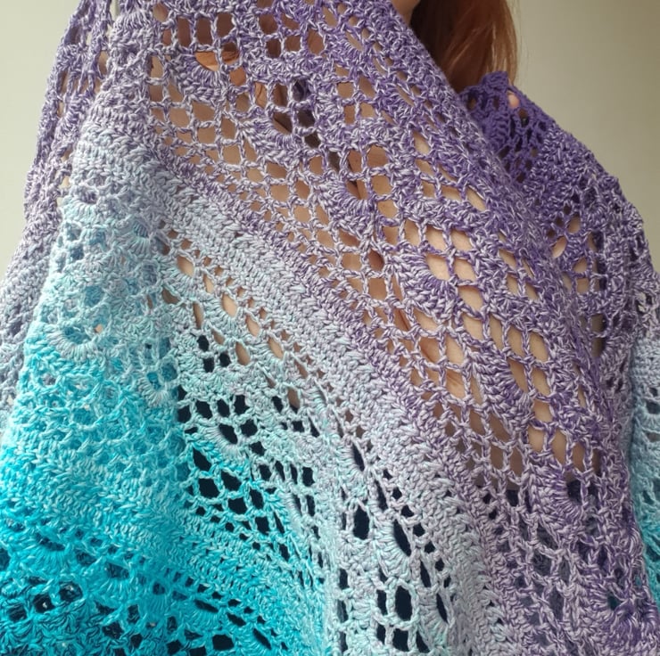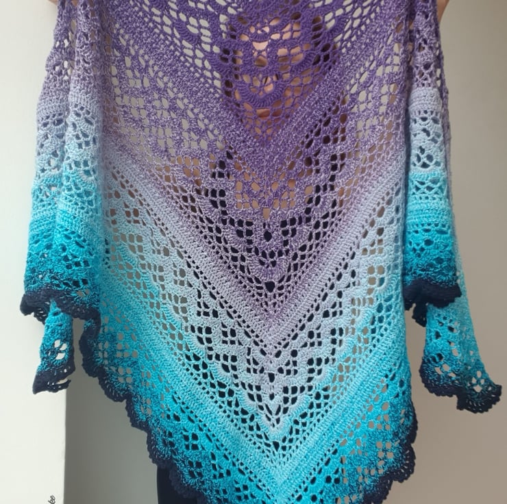 Care: hand wash in warm water with a mild detergent suitable for delicate garments, rinse. No twisting or wringing of the shawl. Roll it in a towel and let the towel absorb water. Spread the shawl flat to dry.