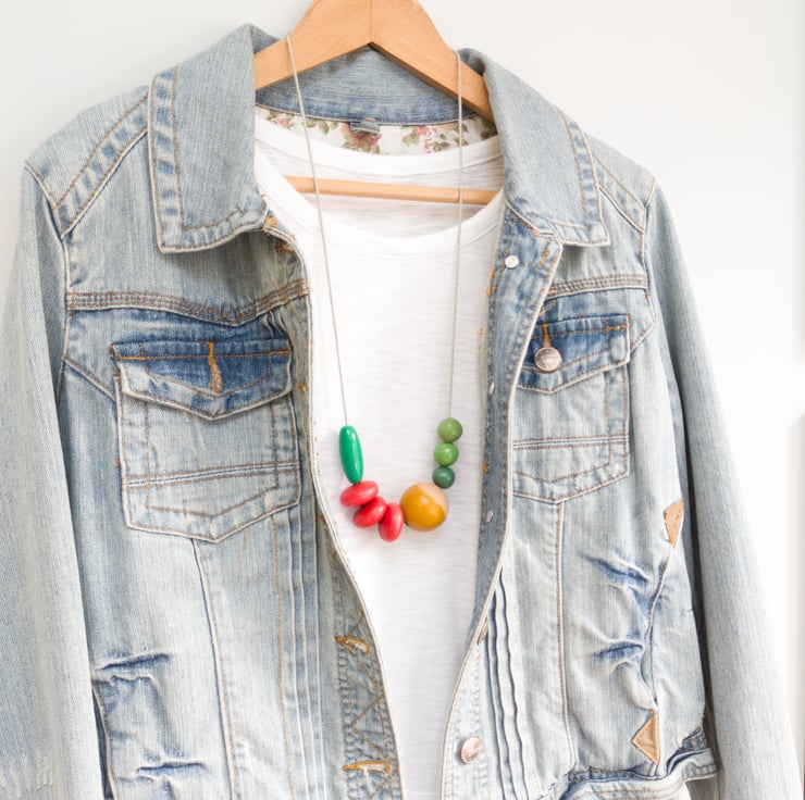 Cleo - Repurposed beaded necklace in greens, mustard and red