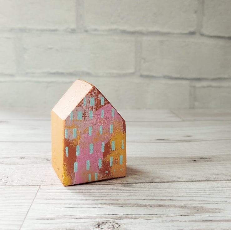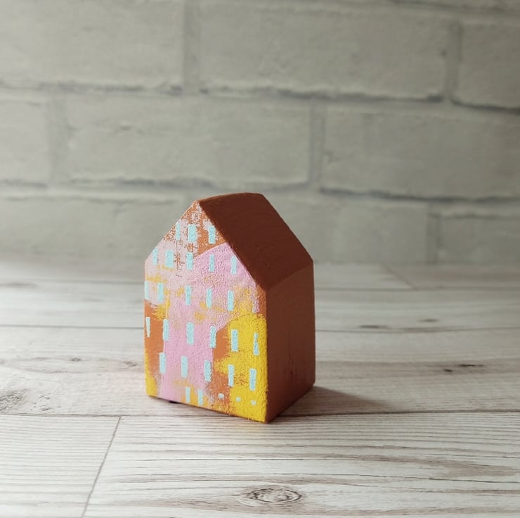 I moved to the countryside in 2019 and had been building up a stash of wood offcuts from other projects, intending to use them for firewood for the coming winter; realising that a lot of this wood was high quality pine which was too good to burn, I came up with the idea of using it to make little houses (a shape which is relatively easy to cut with limited woodworking skills/equipment). As it turns out, little houses are not only en vogue but they are the perfect canvas for experimenting with colour and pattern!