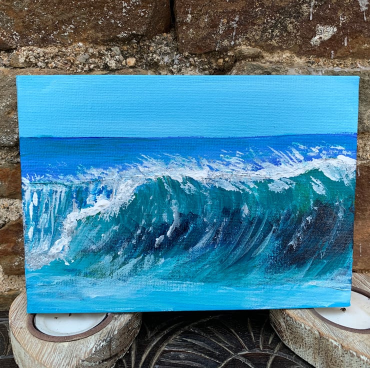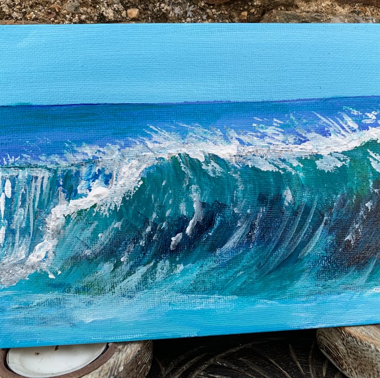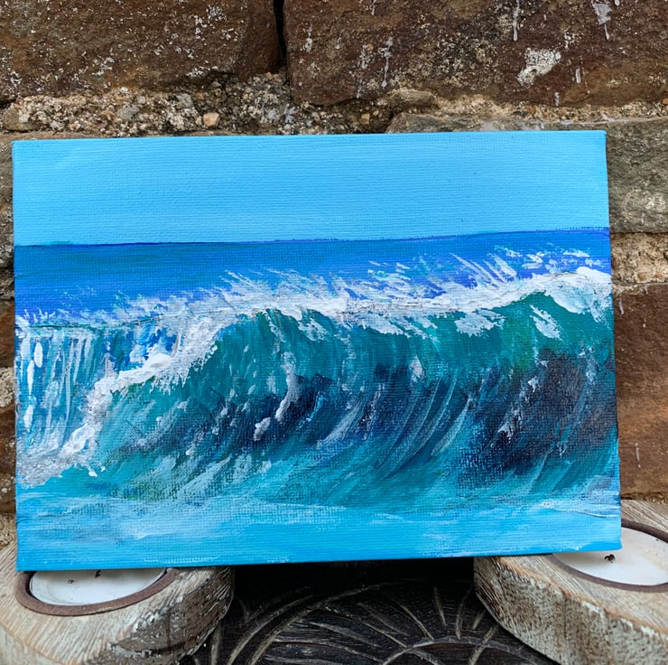 A lovely little Painting of Sea Waves. Acrylic on canvas board. 7” by 5”.