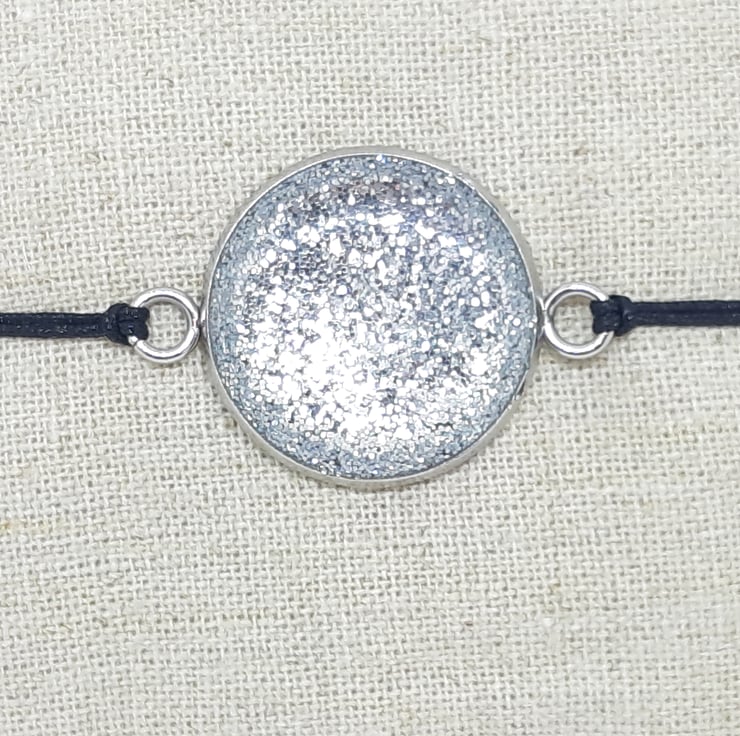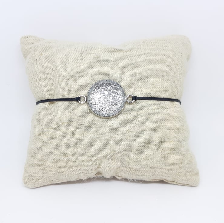 Handmade glitter resin pendant with adjustable cord bracelet - silver.