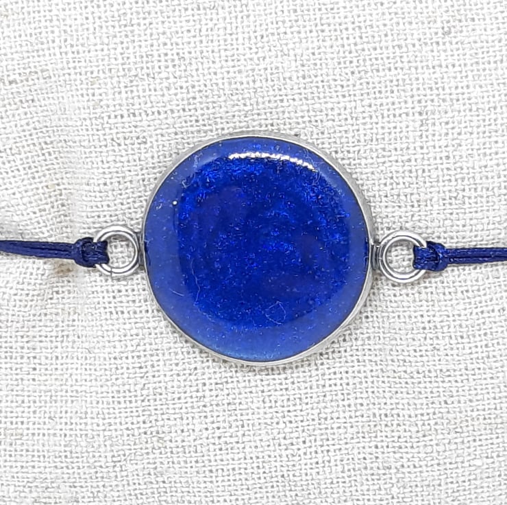 Handmade, resin pendant with adjustable cord bracelet - navy blue. Pendant size approximately 20mm.