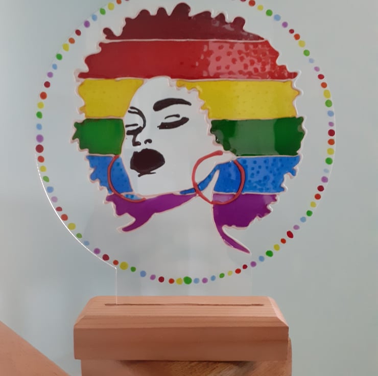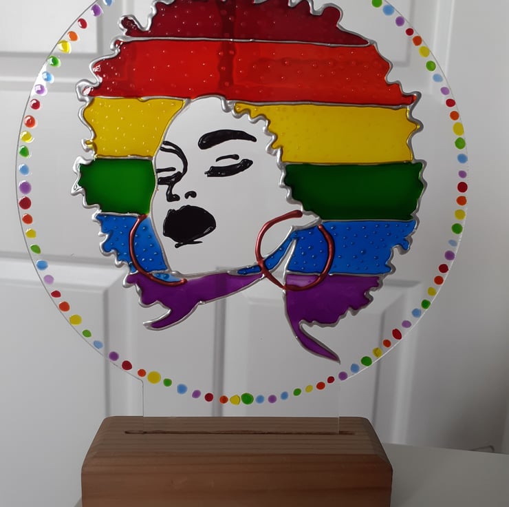 This is a striking rainbow sun catcher which will appeal to the rainbow lover, the afro lover, the sun catcher lover, the LGBTQ community etc.....!
