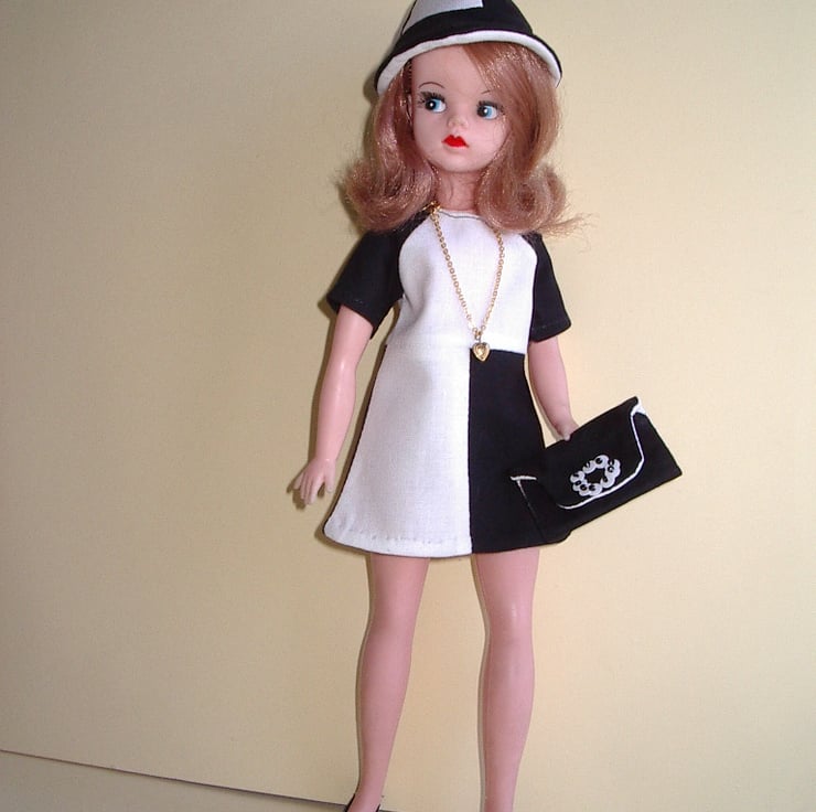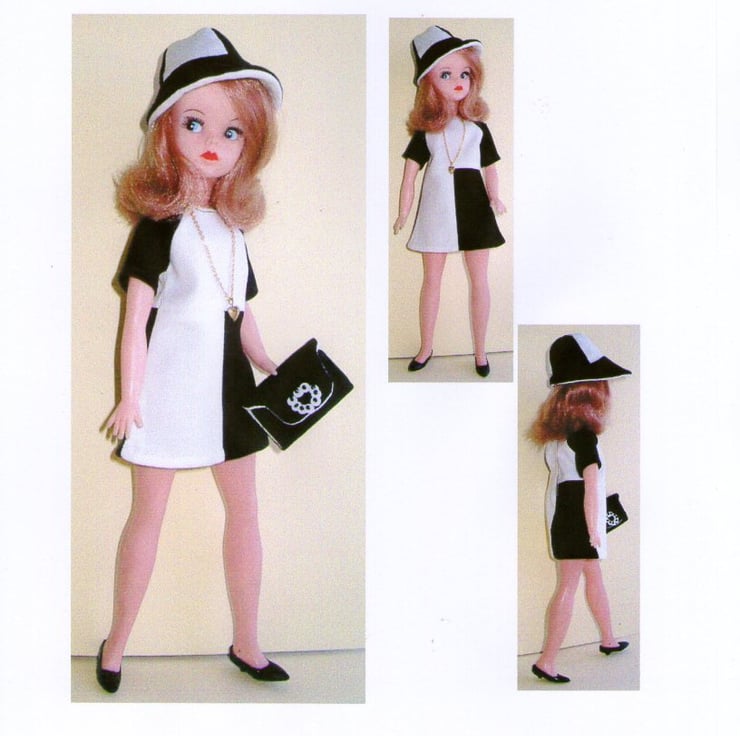 Sewing Pattern for 11-12" Fashion doll. 1960's 'Op Art' style Dress, Hat and Bag