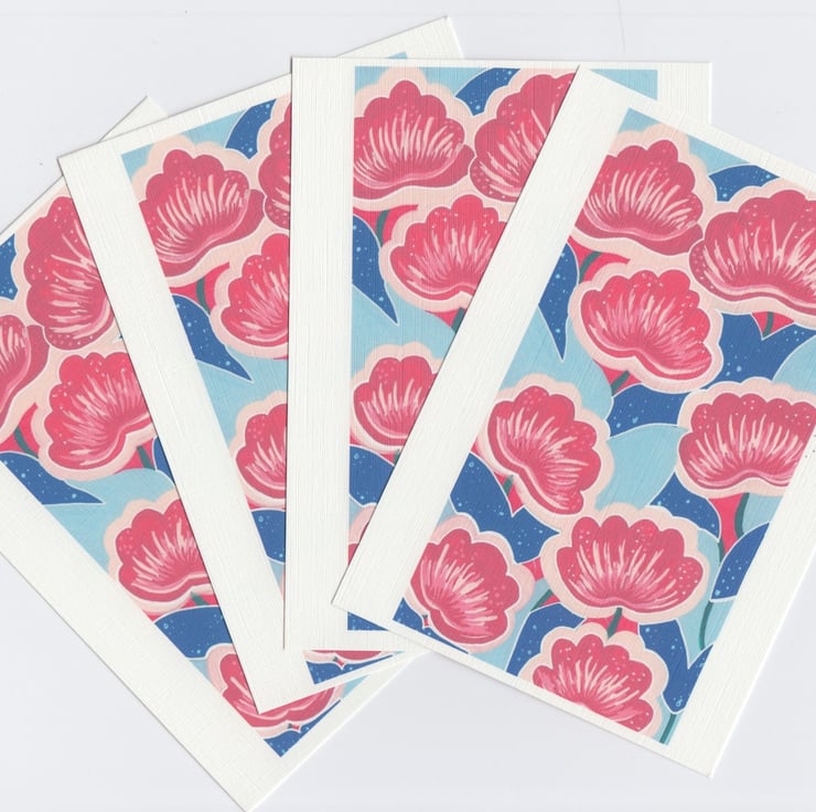 Set of 4 postcards with bold floral Art Deco inspired prints.
