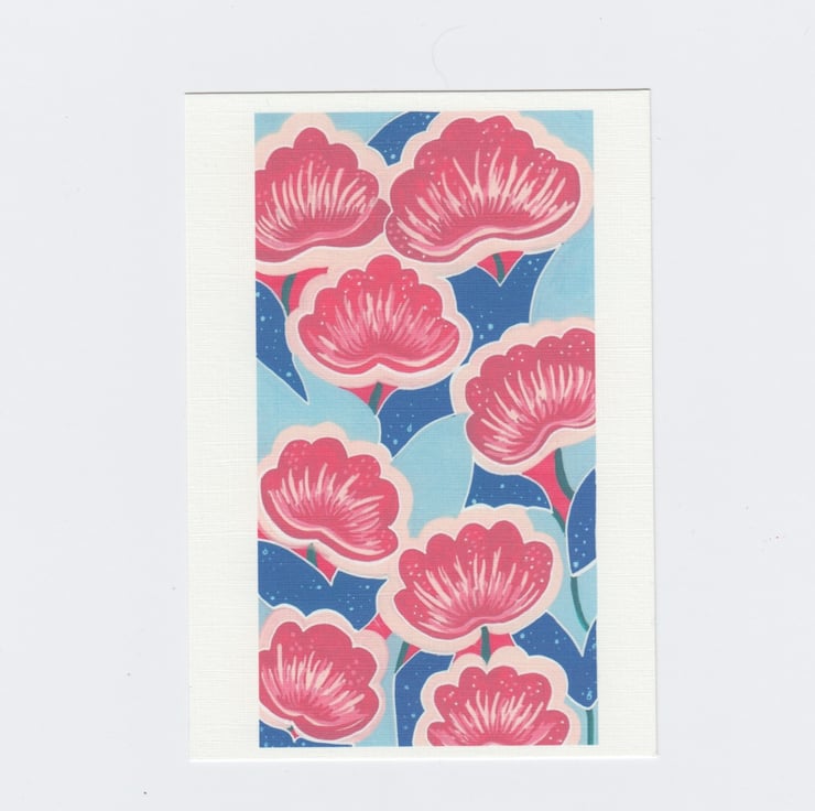 High quality digitally printed A6 cards on fine textured white cardstock, design is printed from my original pattern design. Colours include pastel blue, bright pink, and royal blue