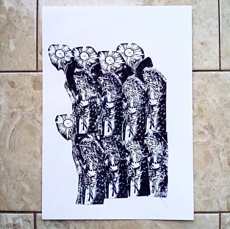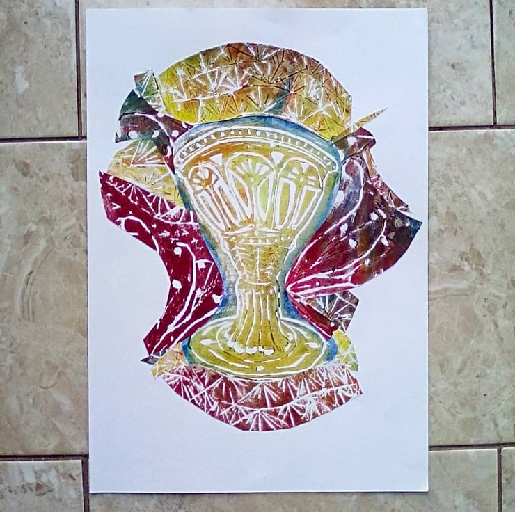 Like many printmakers, I tend to hoard a lot of prints, including ones that were not successful. Looking on the instagram I see a lot of artists making collages of discarded prints, I felt this would give new life to my discarded prints as well as making space for new work.