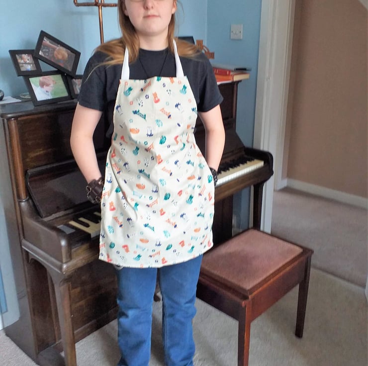 I originally made aprons for my own children, now in their forties and fifties. I cannot resist attractive cotton fabrics for kids! Over the years I have made and sold hundreds of little aprons, and quite a large number of rather bigger ones!