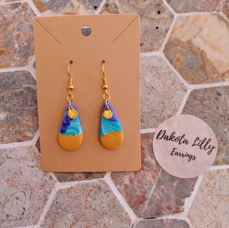 These beautiful beach themed earrings with gold coloured shell charm on gold coloured metal hooks.