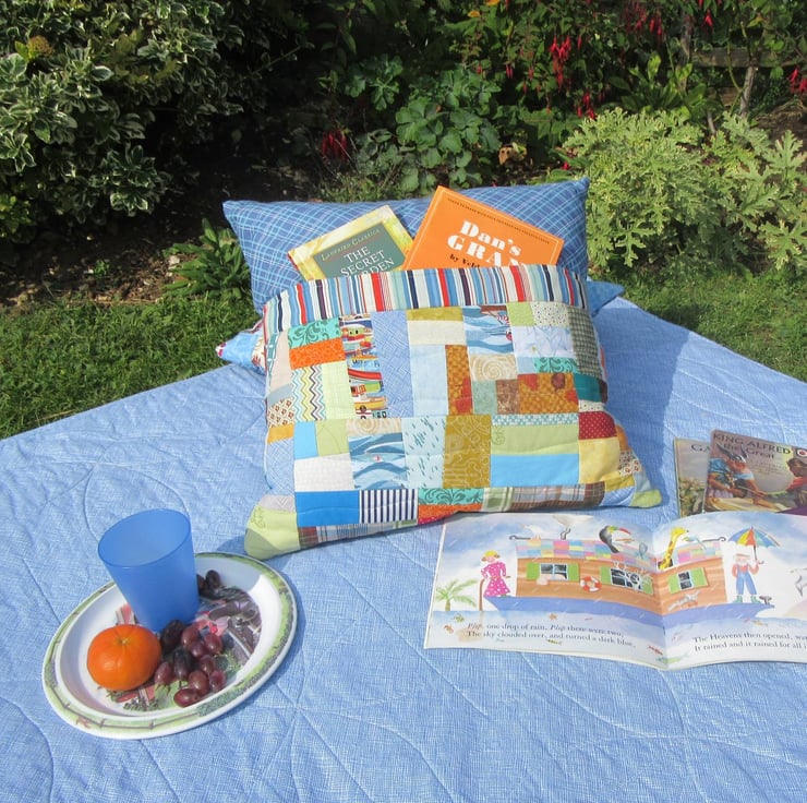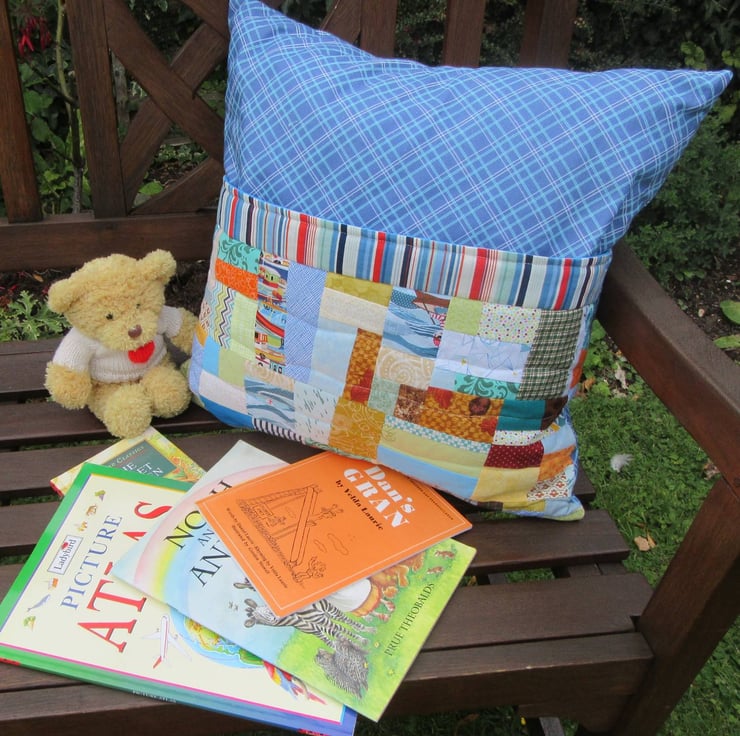 I'm so glad both my sons grew up loving to read. This patchwork book pillow is designed to encourage a child to carry their current book around, indoors and out, and to have the comfort of a cushion to lean on wherever they settle to read.