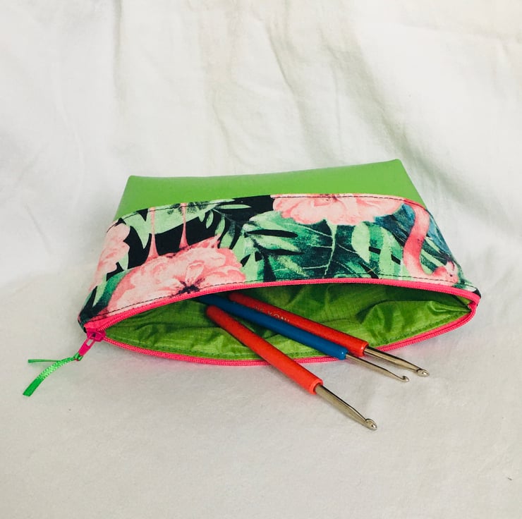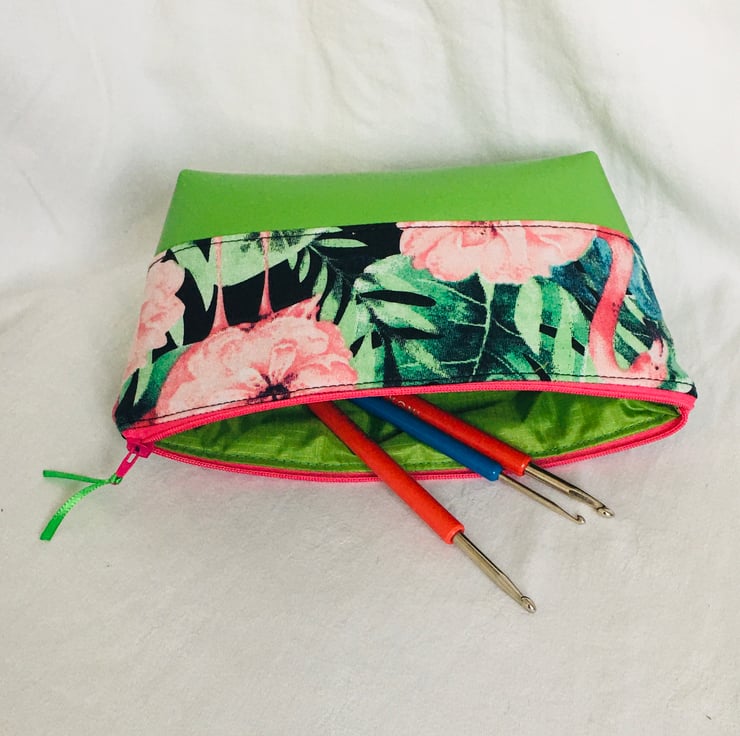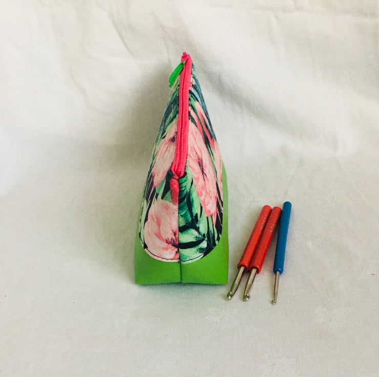 Why not treat yourself or someone special, to this stunning make-up bag, small wash bag, pencil case or zipped Craft Tools Pouch. A great compact zipped pouch to put your essentials in to take with you or to keep your craft tools, crochet needles, jewellery tools in. This bag looks stunning a real eye-catcher, whilst being practical and functional.