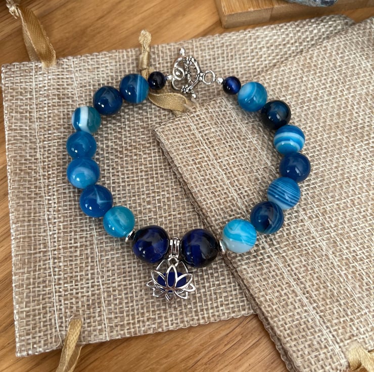 Blue Agate semi precious Gemstone Bracelet