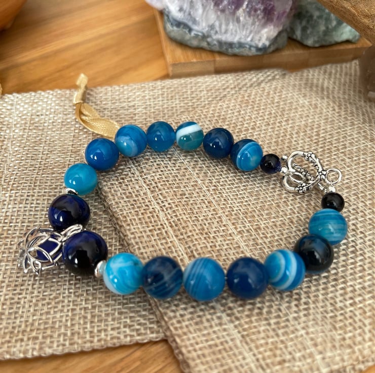 Surrounded by blue stripe agate 10mm